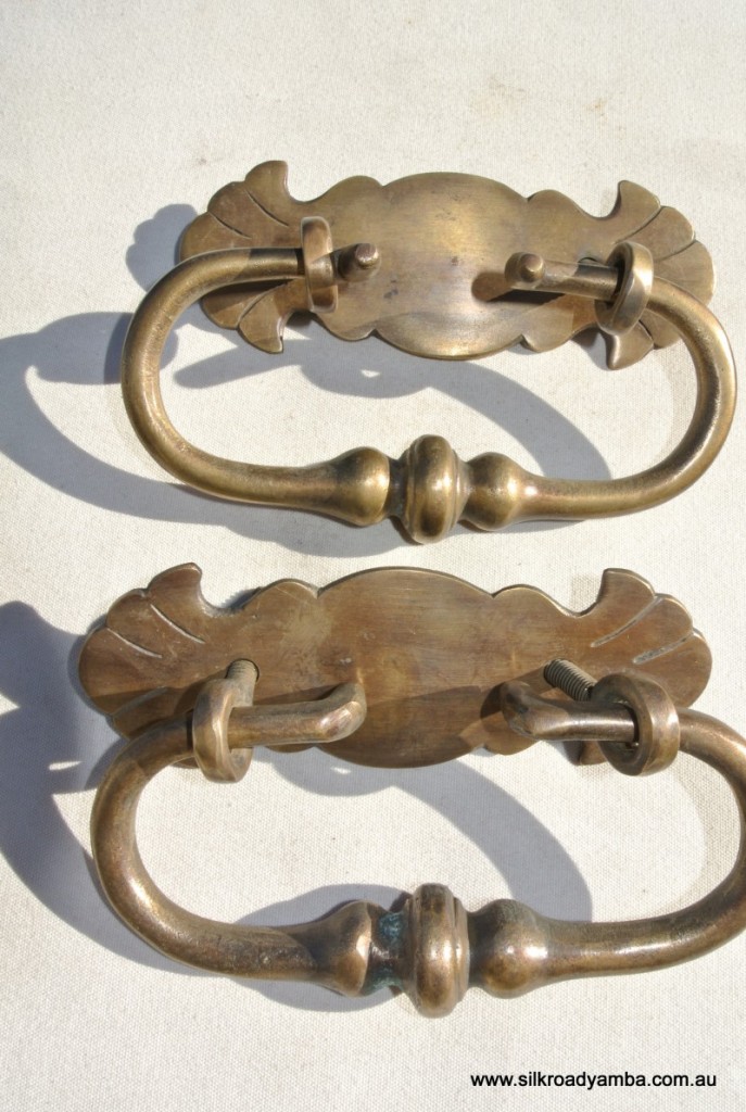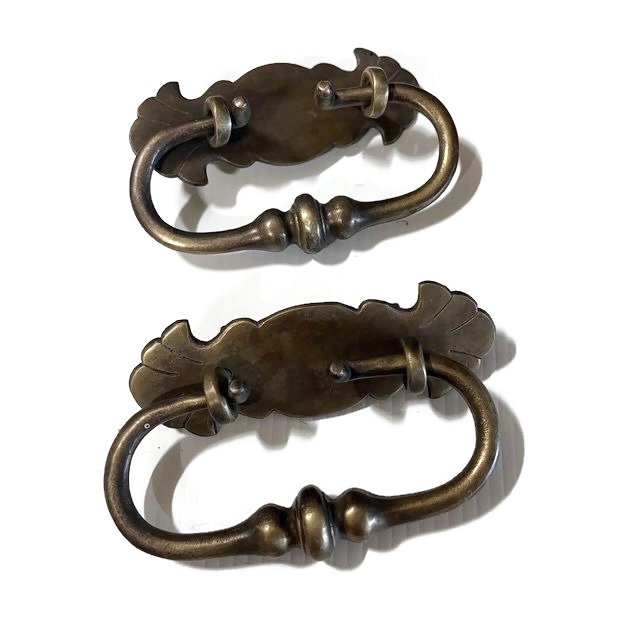 2 small shell shape pulls handles code 3000 antique solid brass vintage old...