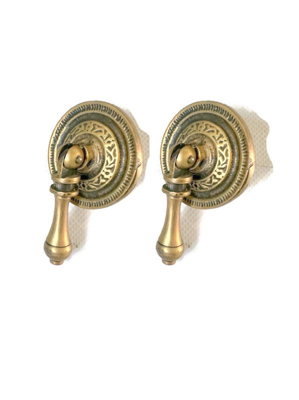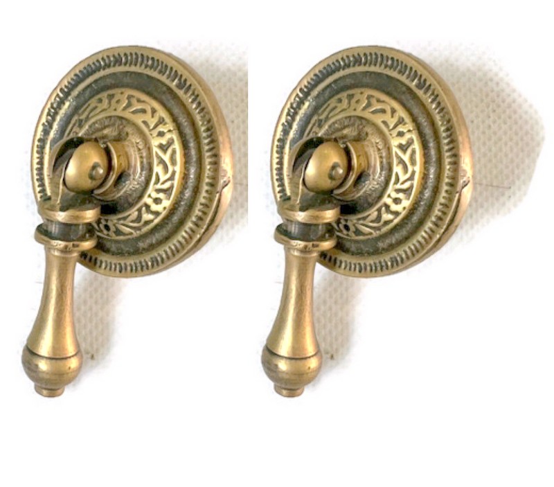 2 heavy antique style DRAWER PULLS Drops KITCHENS solid brass antique colour