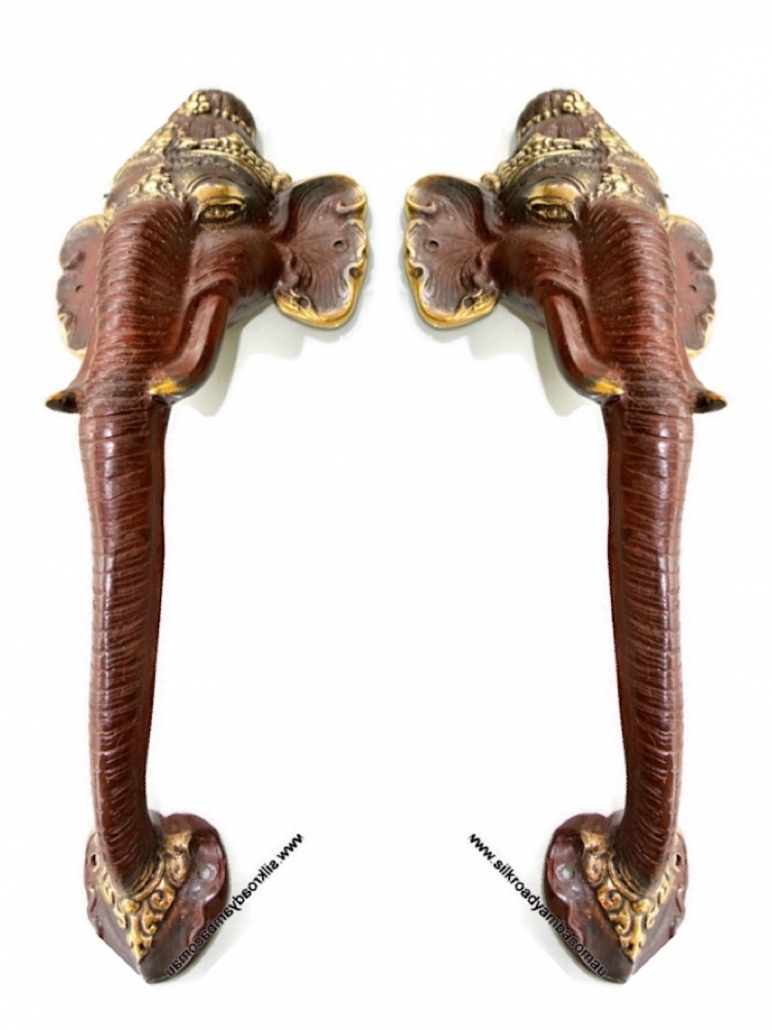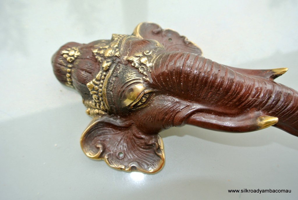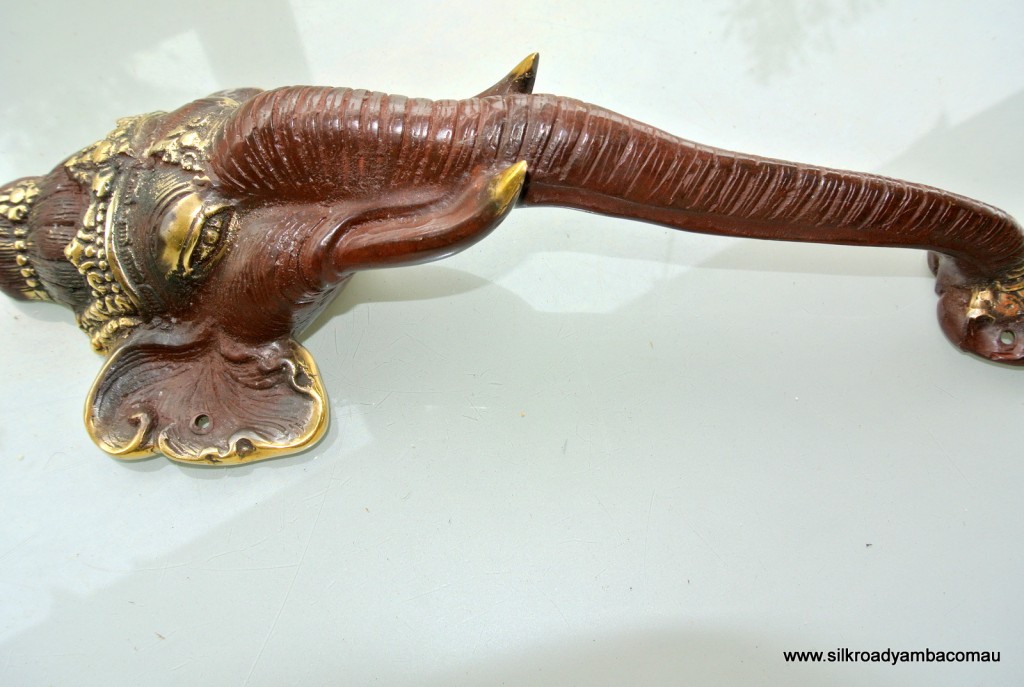 You are here: Home1 / Shop2 / BUDDHA GANESHA DEWI hooks handles pulls etc3 / 2 ELEPHANT Door pull handle 13″ long pure solid brass trunk door...