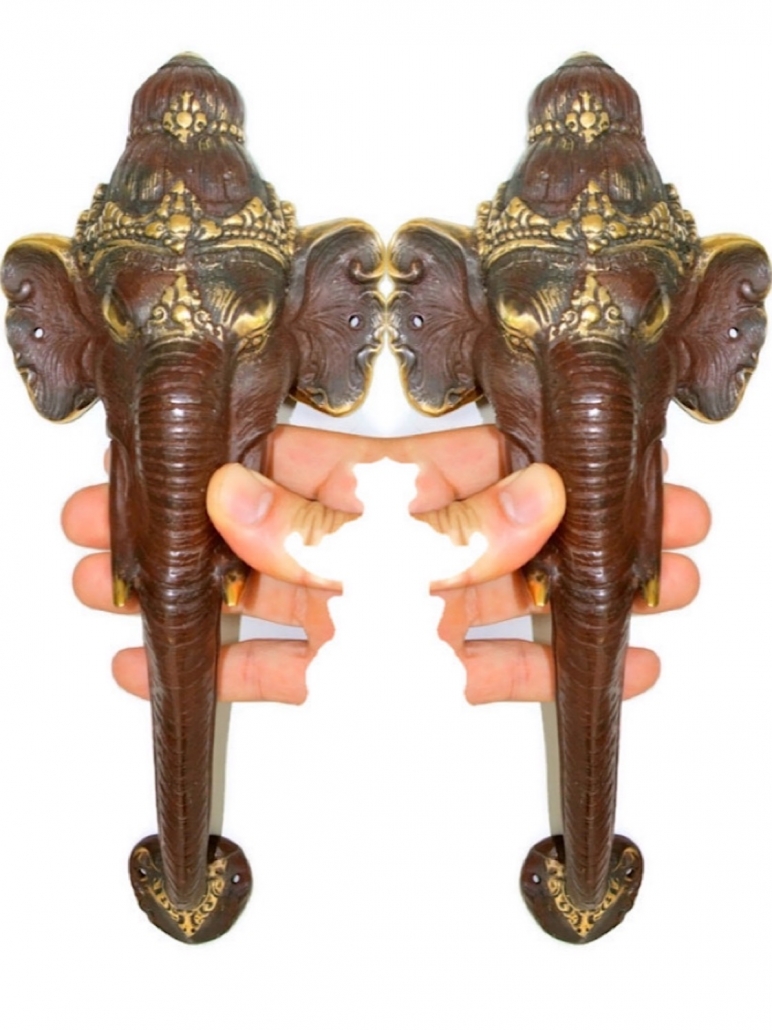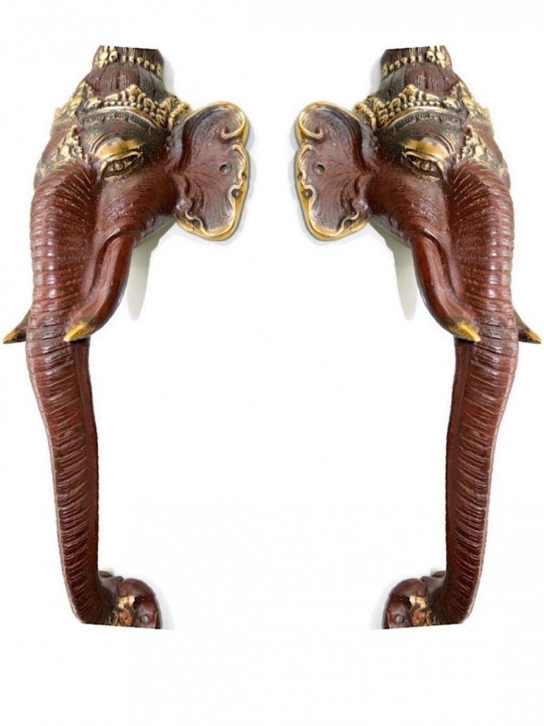 2 ELEPHANT Door pull handle 13″ long pure solid brass trunk door 32cm aged Ganesha Door Handles Vintage Patina knob grab