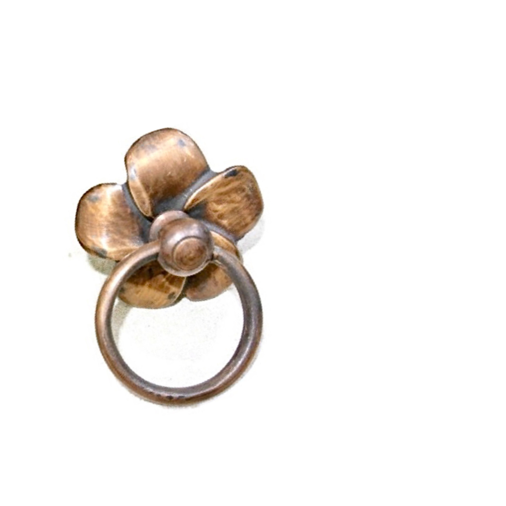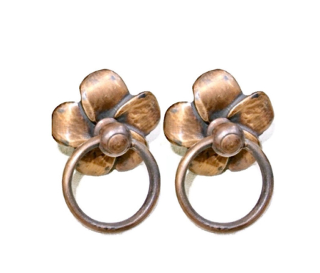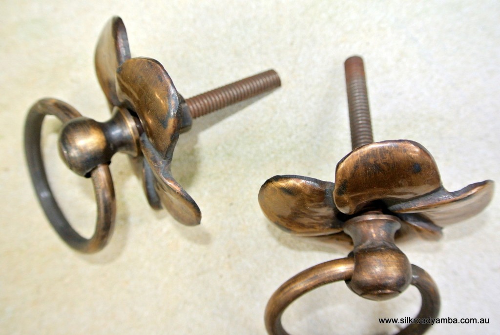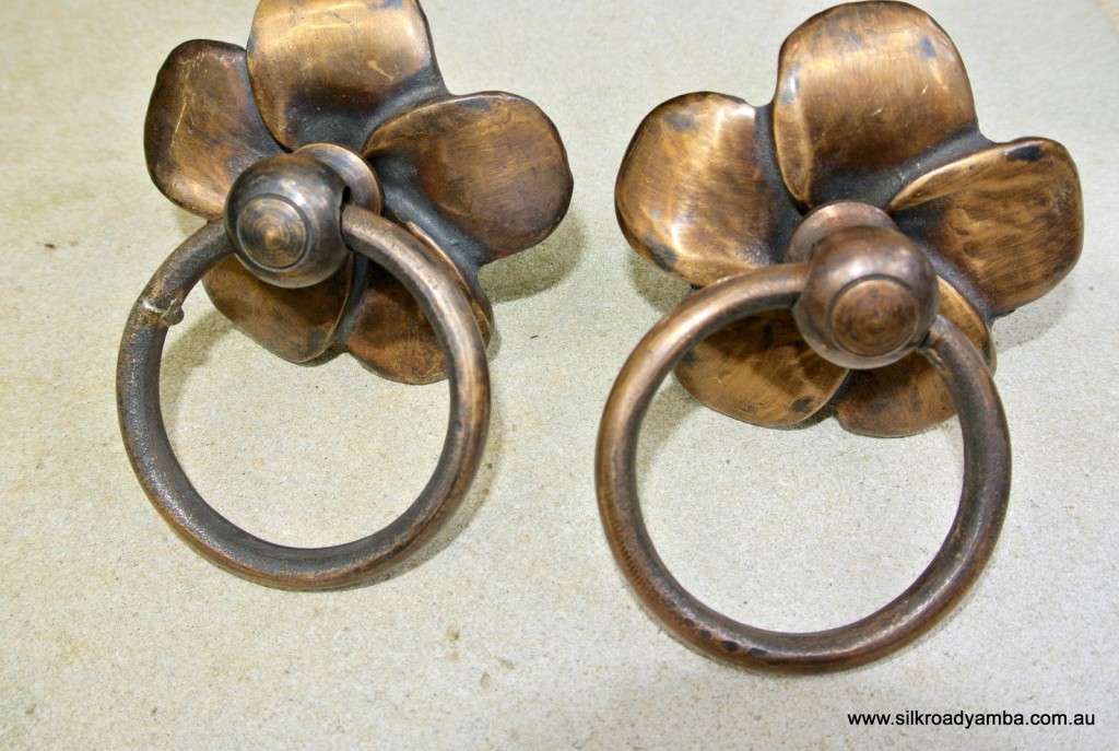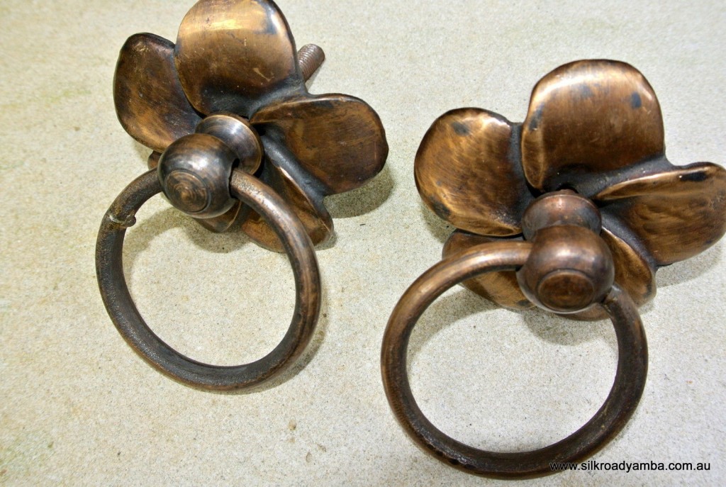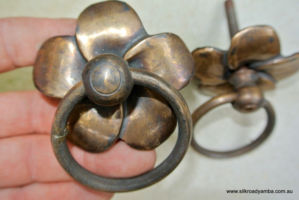 2 very large version round 13.5 cm handle ring pull solid brass heavy old vintage...