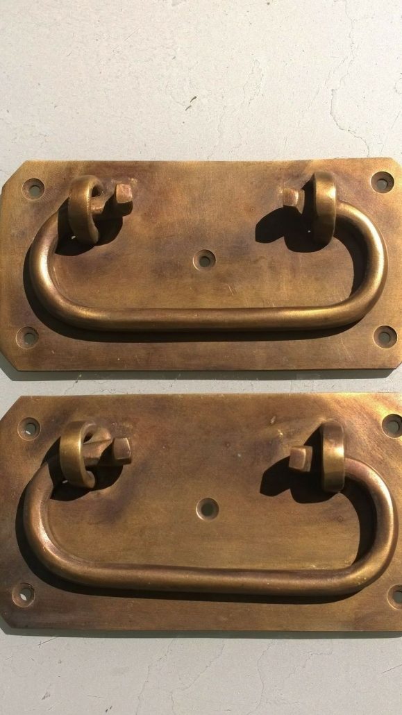 2 large BOX HANDLES 13 cm 68 mm wide chest watsonbrass 43 A large trunk old age style 5″ solid BRASS natural bronze patina blanket gate door barn pulls lift lock