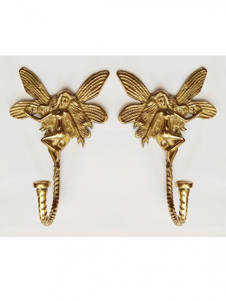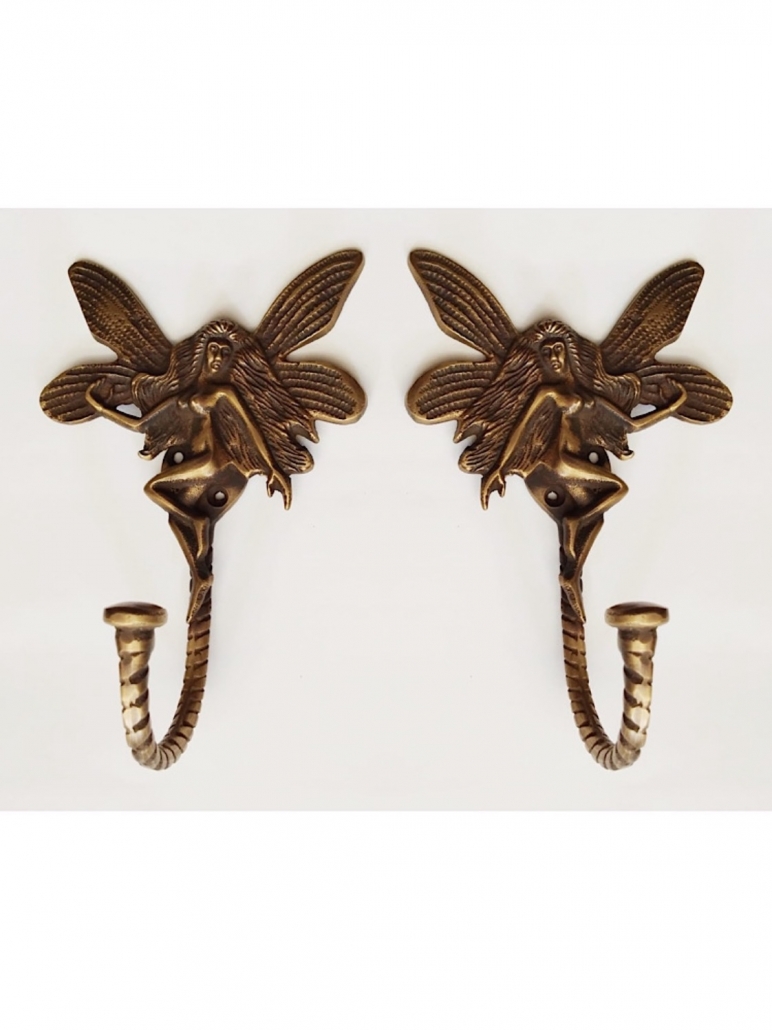 2 large Goddess Fairy Wall Hook Pure solid 100% Brass aged 6″ vintage style heavy hand made