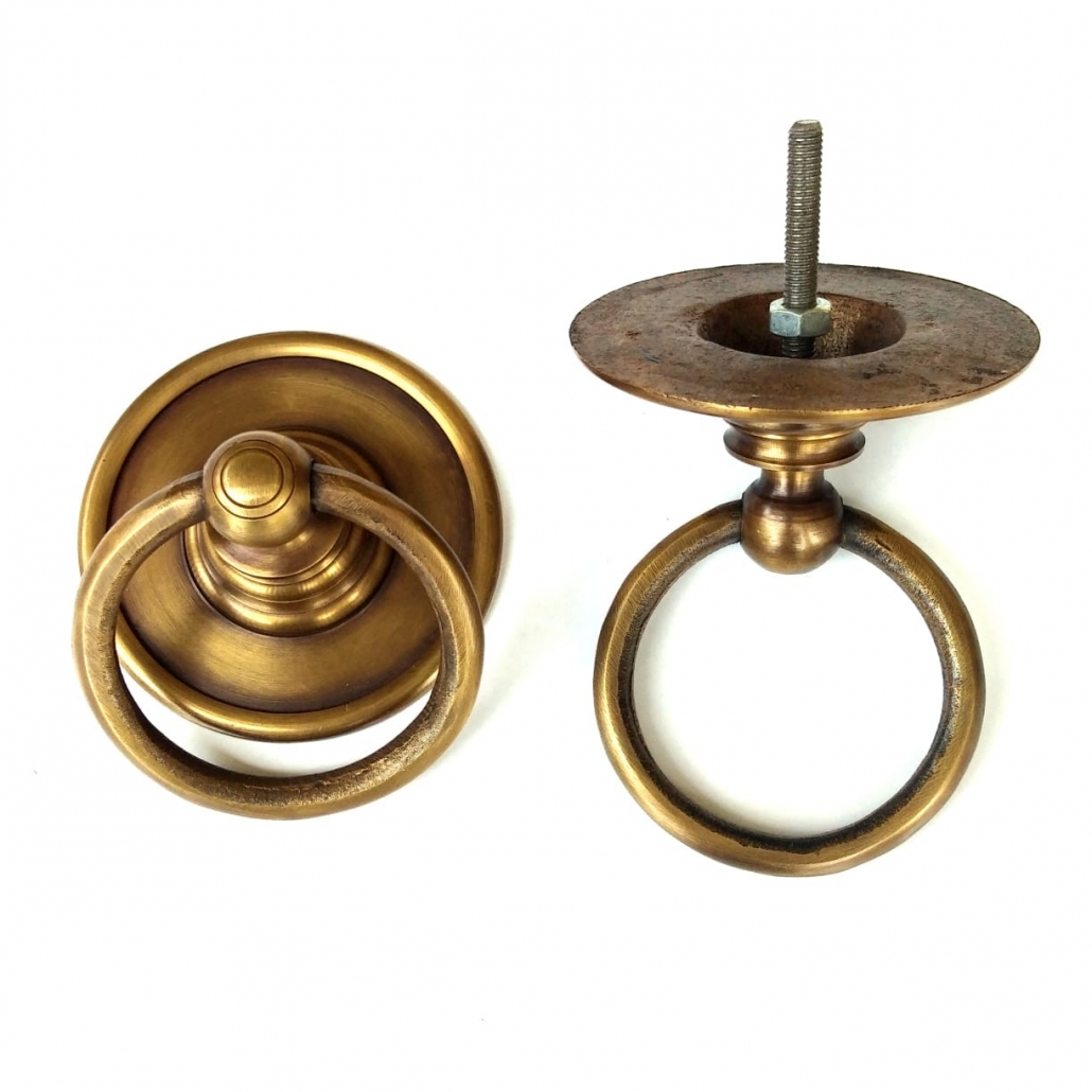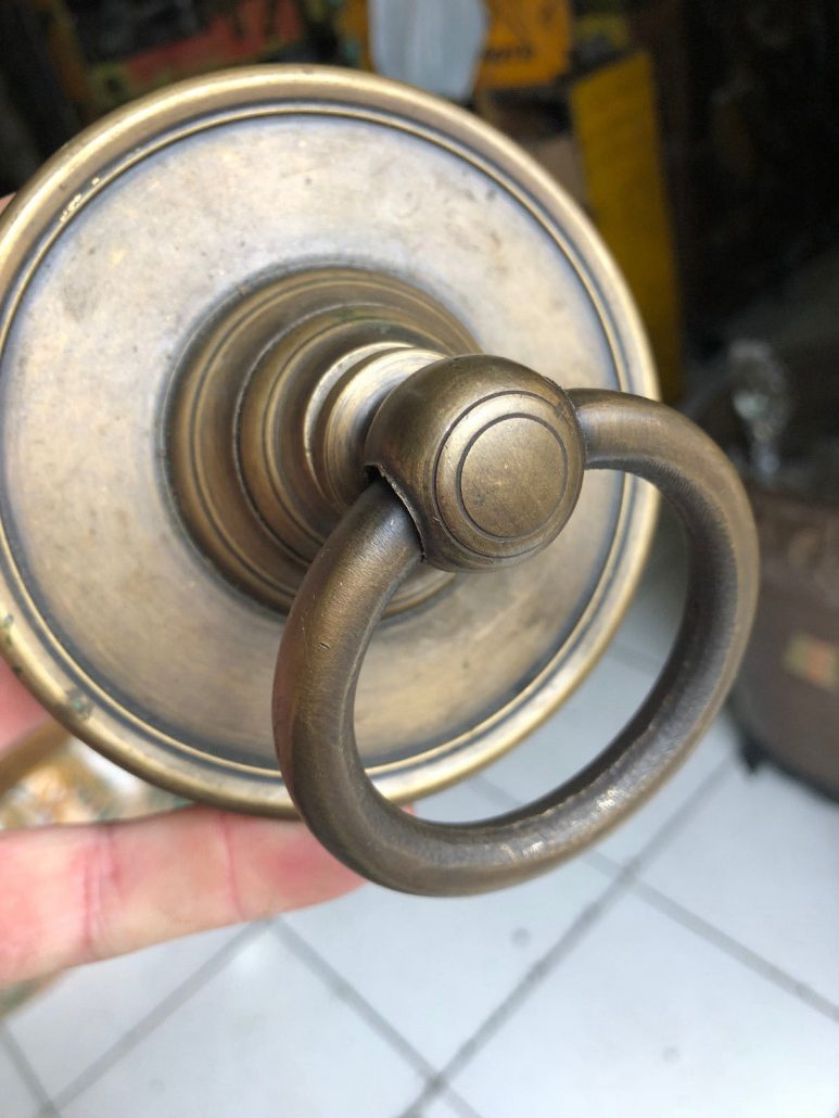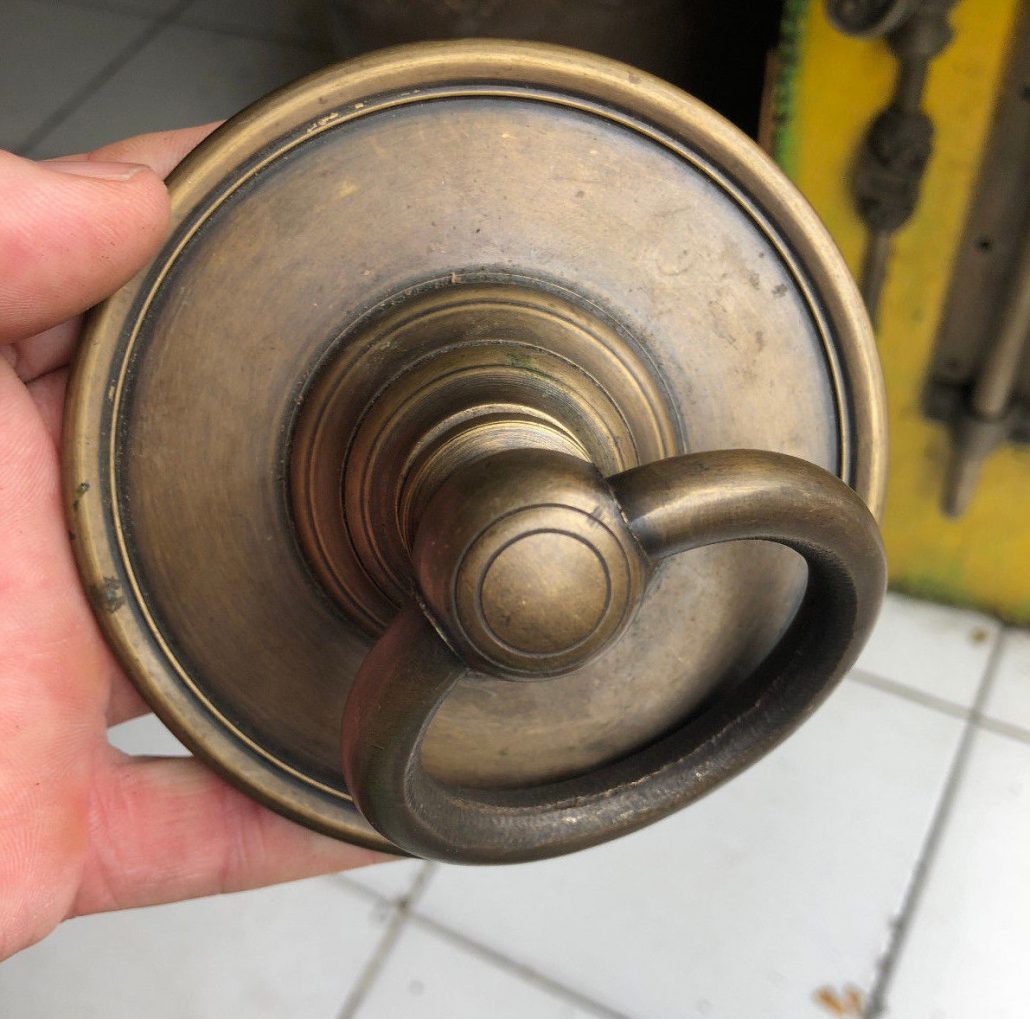2 handle ring pull 3 ” inches flower solid brass heavy old vintage style...