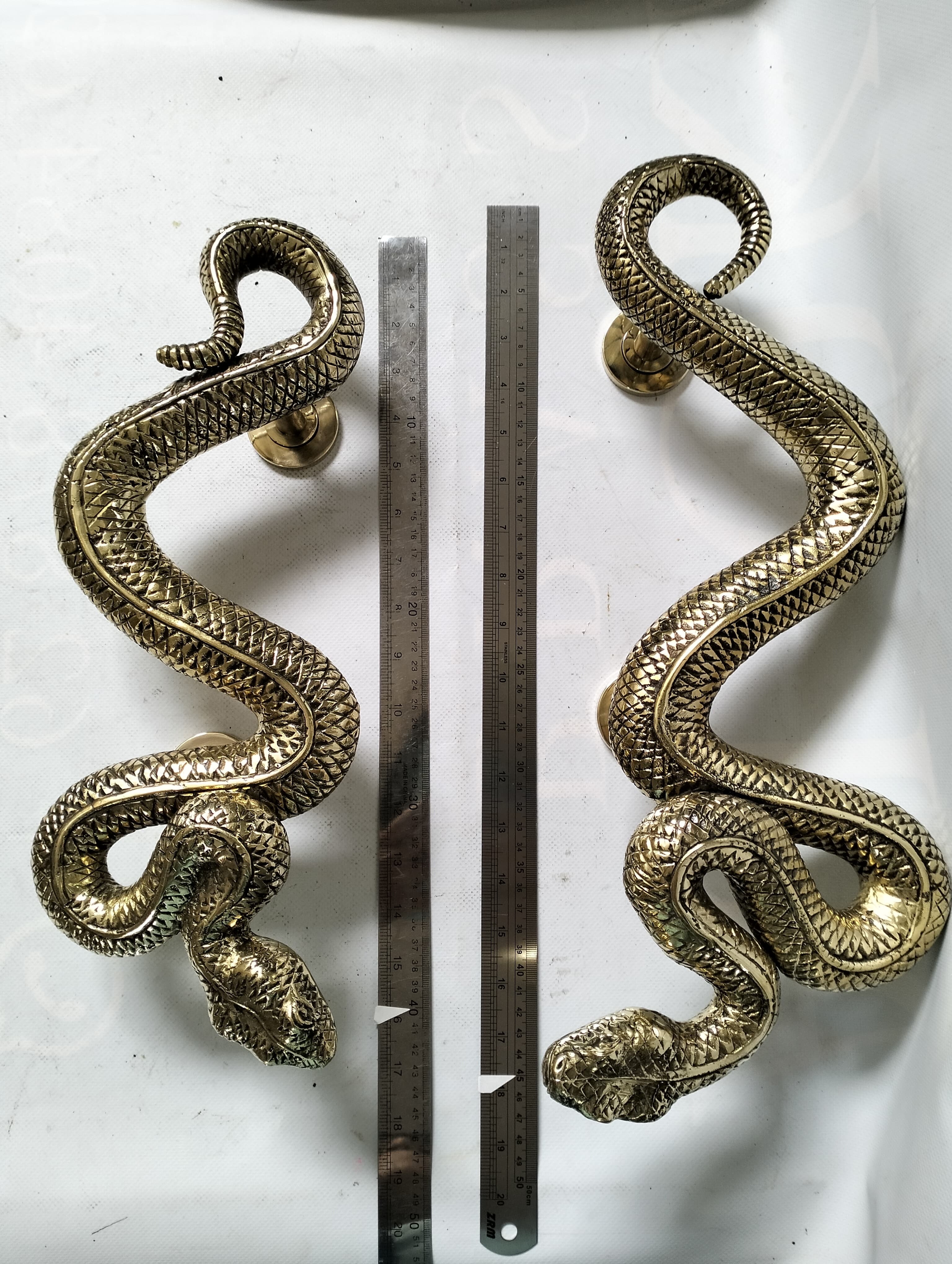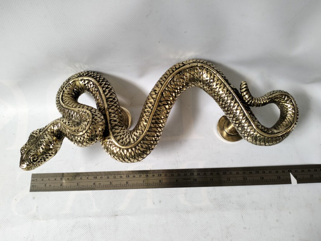 2 pieces 18″ inch long & 16 “inch RATTLE SNAKE gorgeous door handles pair 46cm & 40cm Rustic hand made original Old Style basic cast grab heavy left and right
