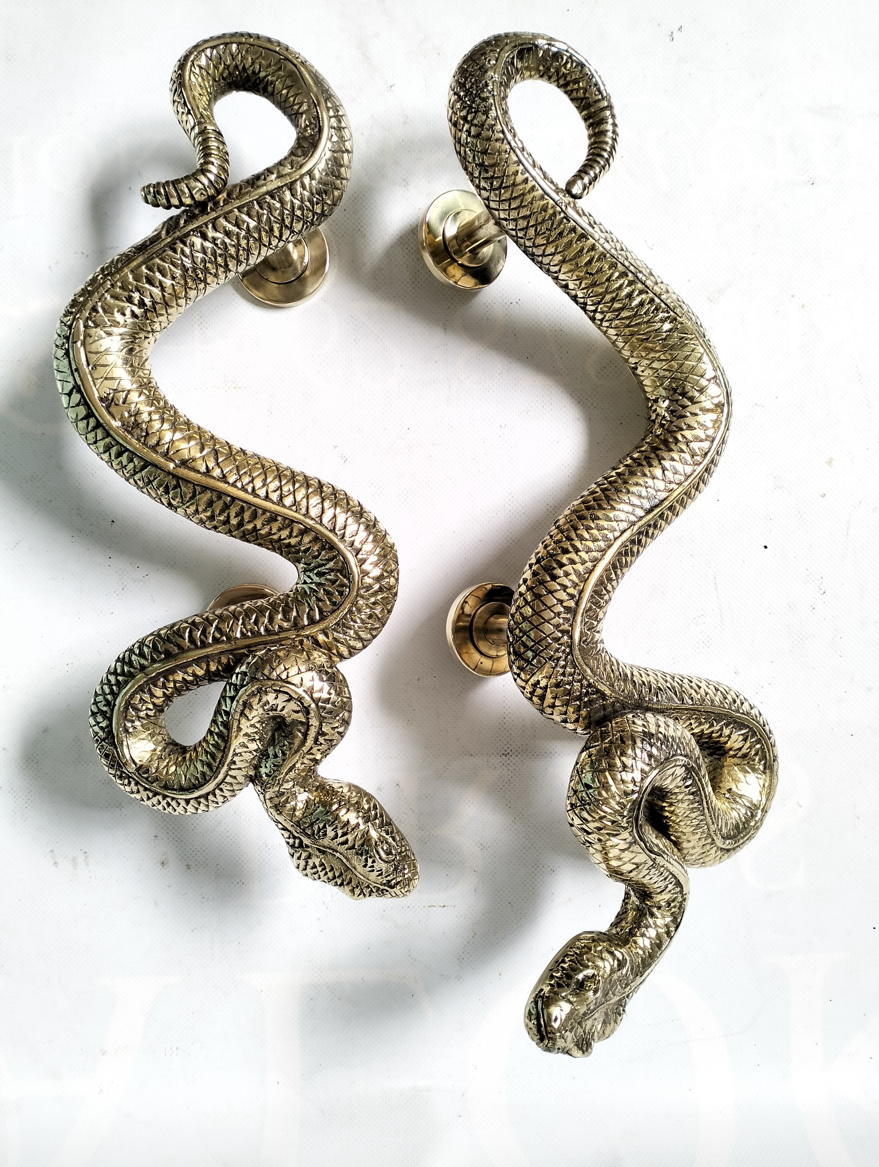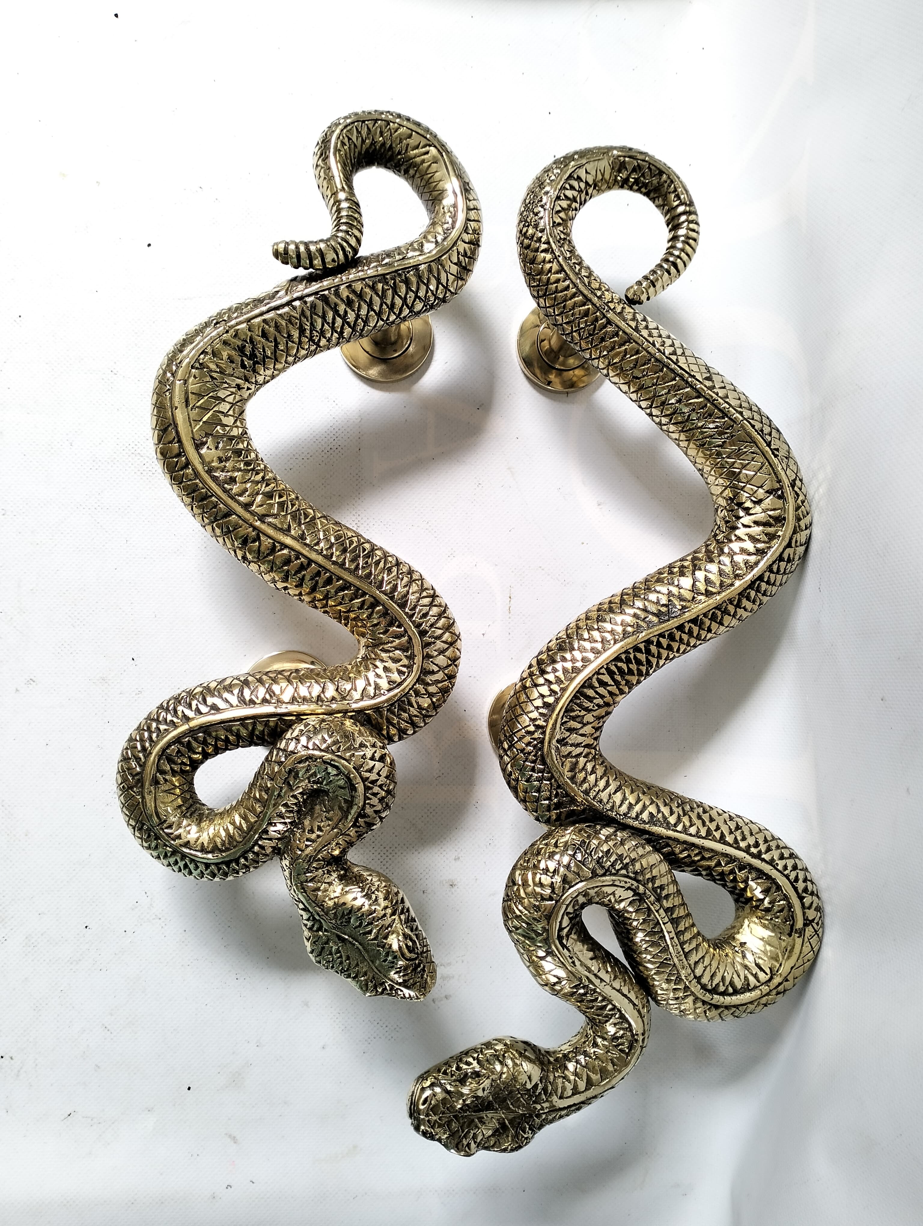 2 BRASS RUSTIC HAND-MADE SNAKE HANDLES