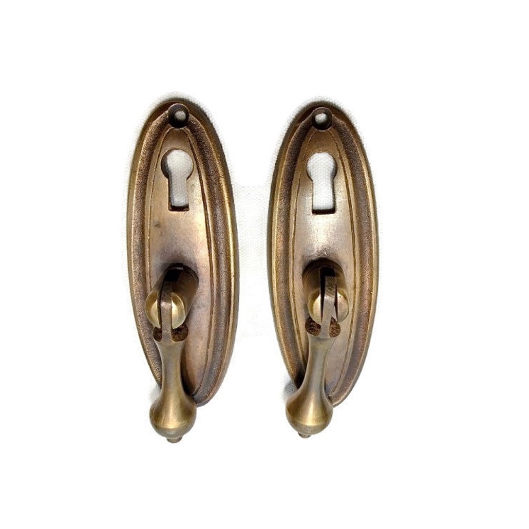 back to back 4 large DOOR handle pulls solid SPUN hollow brass vintage aged...