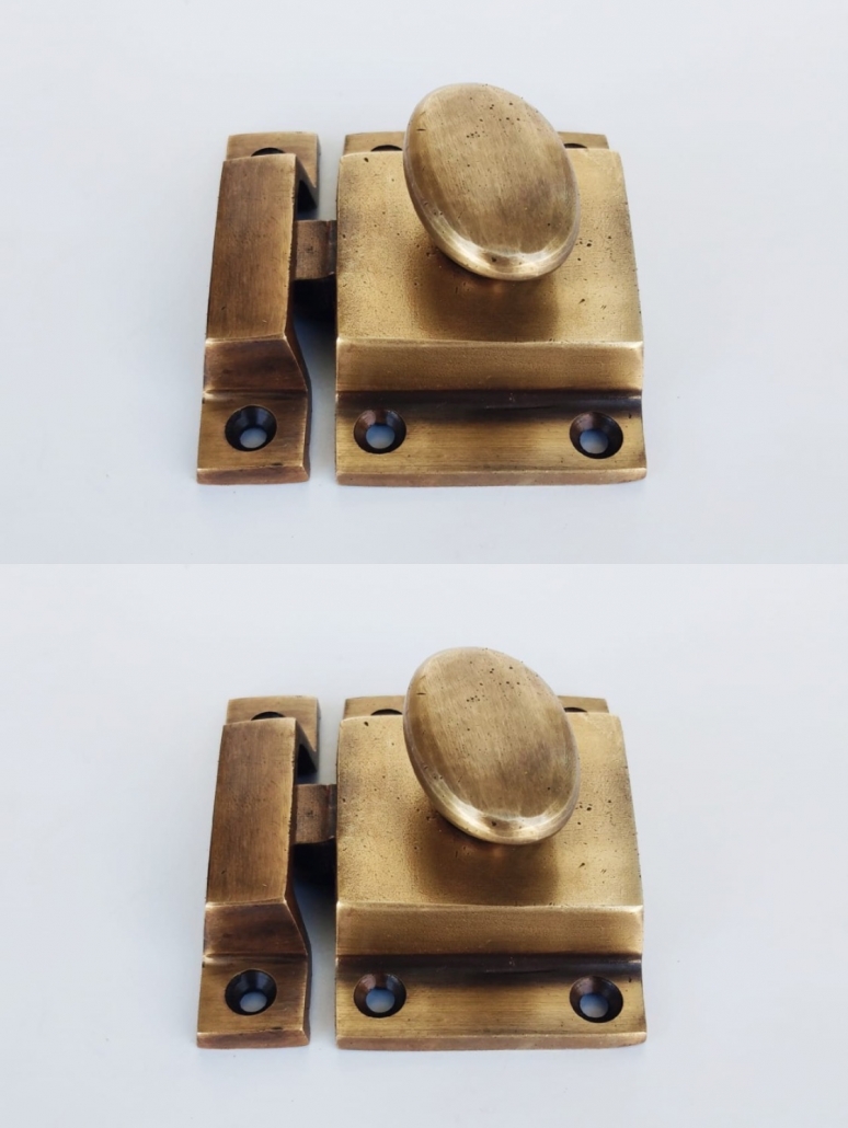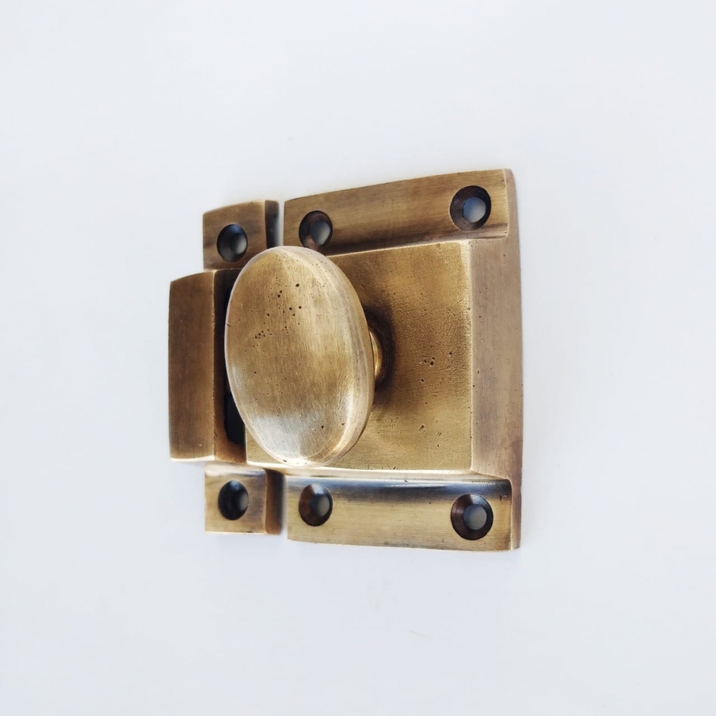 2 small BOX CATCH door watson 1873 BRASS turn button 6 cm aged antique deco style solid pure brass heavy square 2.1/4″ vintage old aged style hand made cast