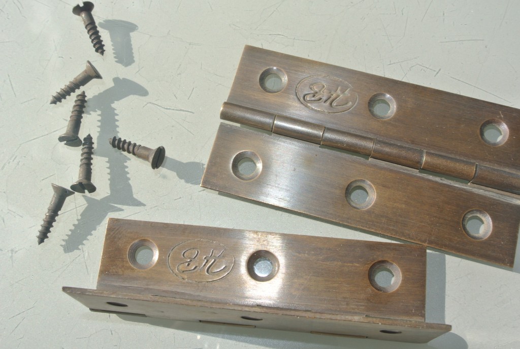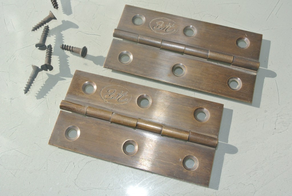 4 very small screw KNOBS pulls handles watson 237A antique solid heavy brass...