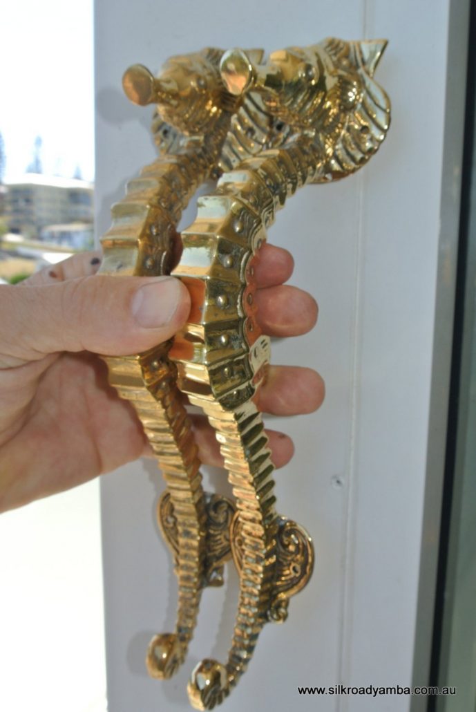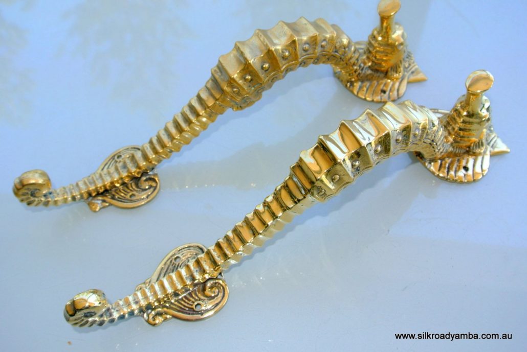 You are here: Home1 / Shop2 / DOOR PULLS3 / 2 small SEAHORSE solid brass door NATURAL old style house PULL handle 10″...