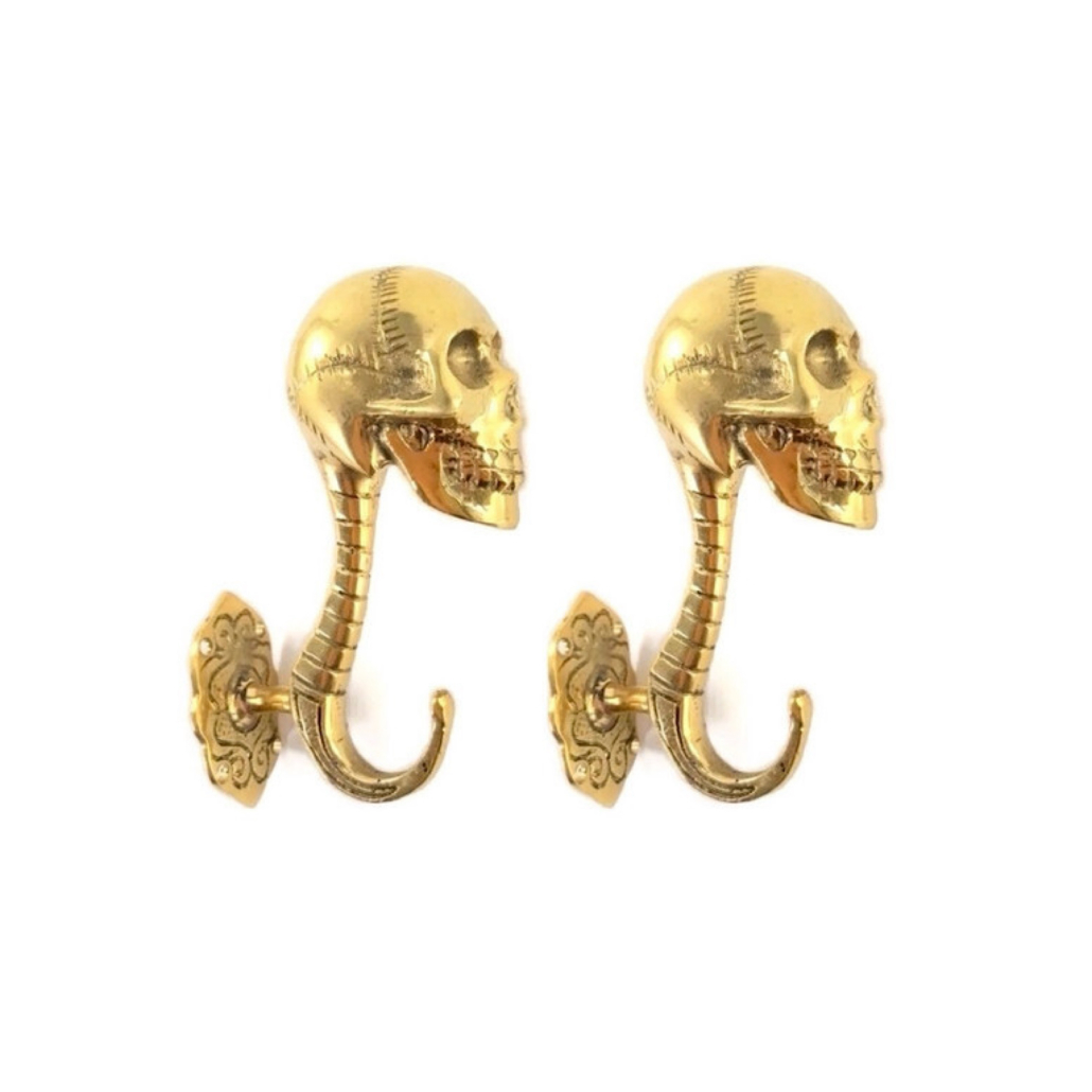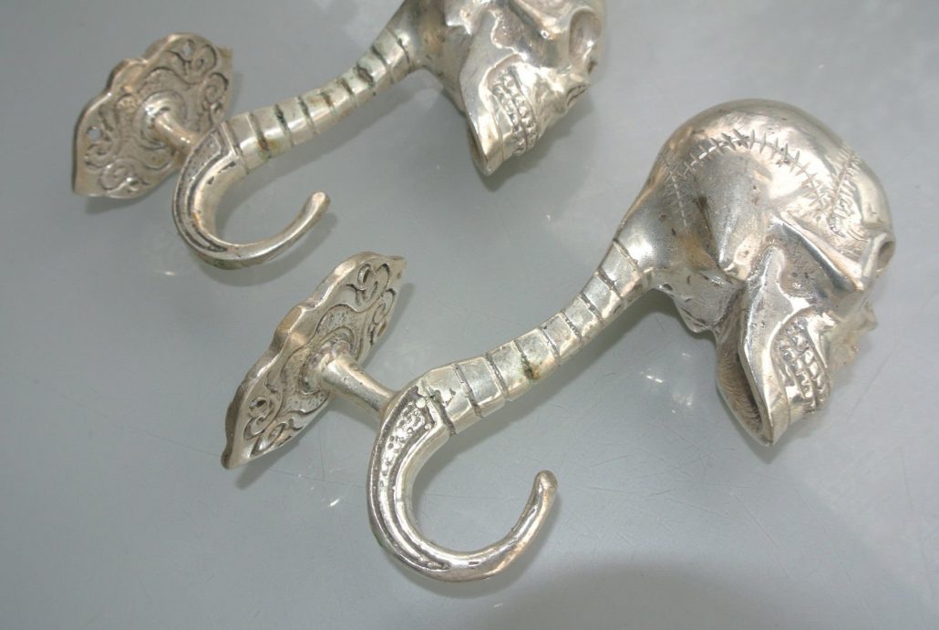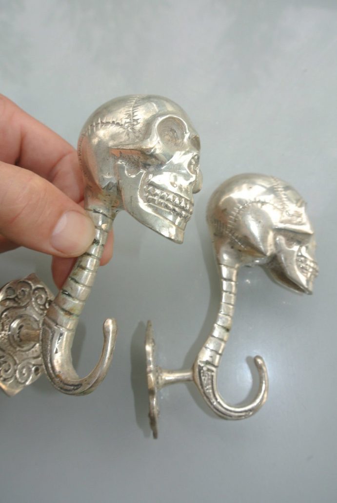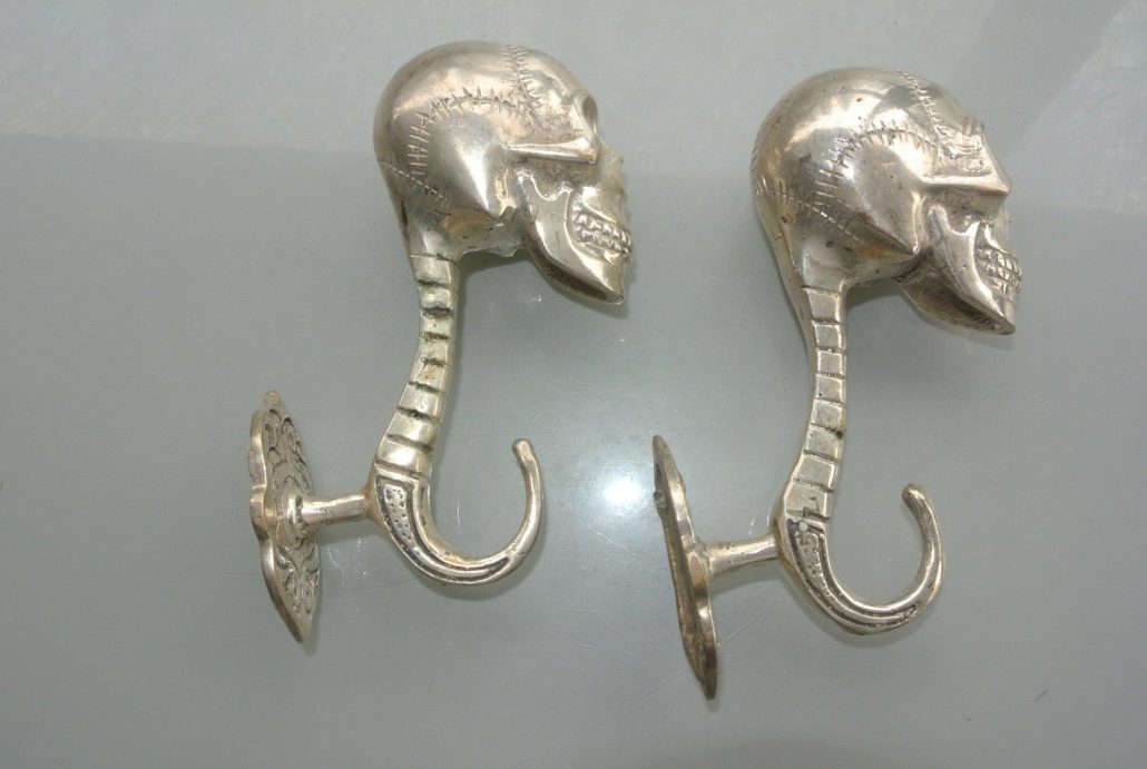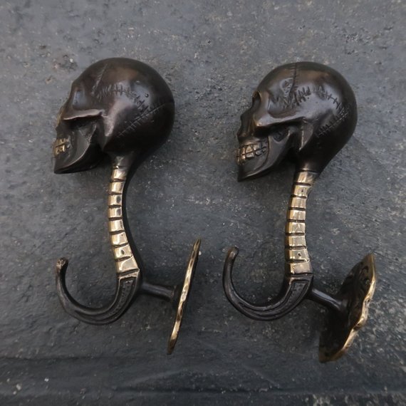 small version 5 ” inches antique aged bronze style SKULL HOOKS solid pure...