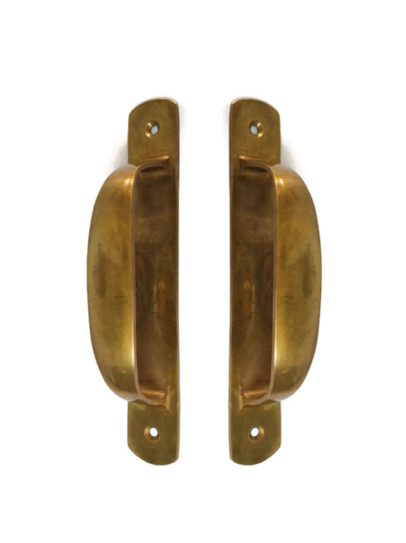 2 pieces 2 handles D PULL 12″ inch handle ribbon solid heavy brass old...