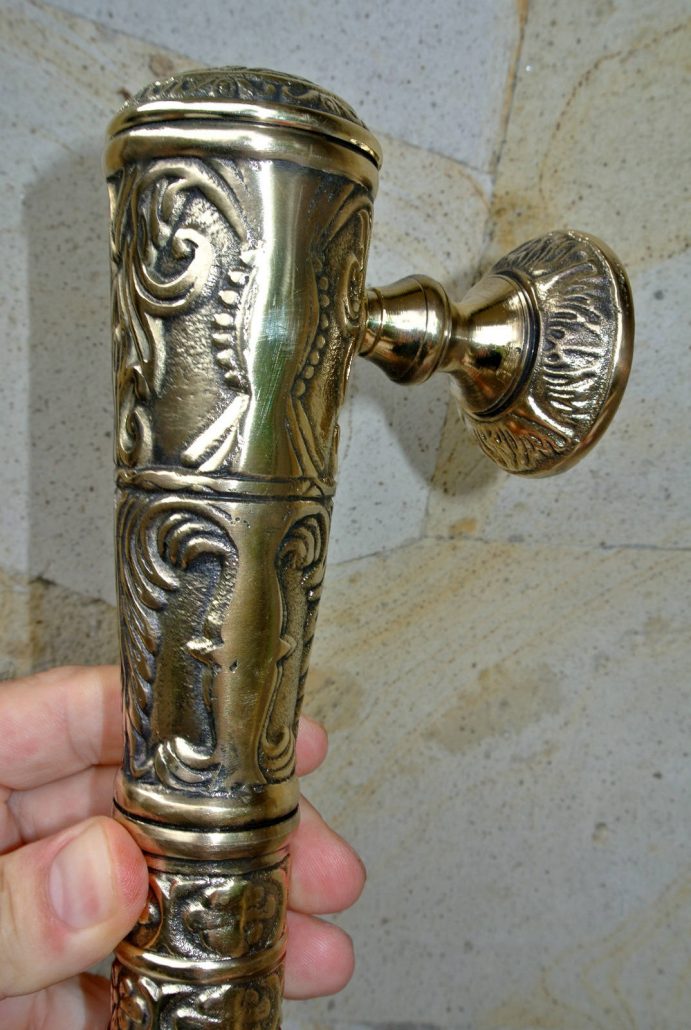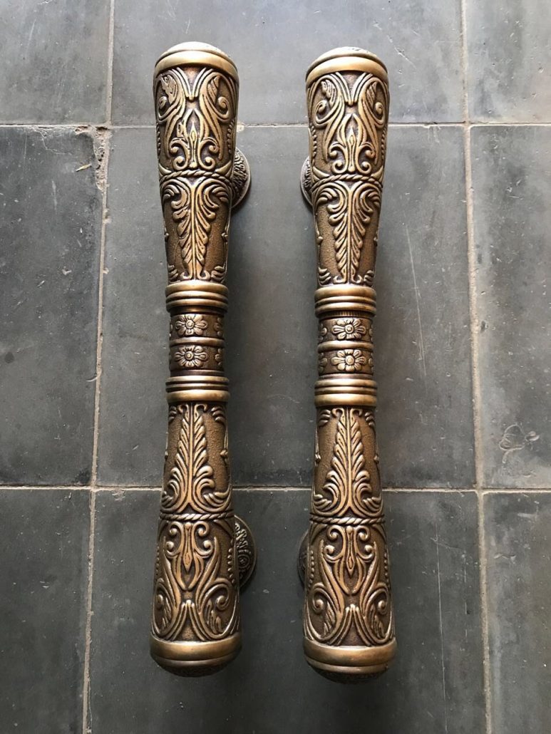 2 XL large engraved solid pure brass POLISHED door old style heavy house PULL handle 40 cm pair 16″ B