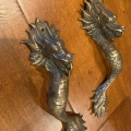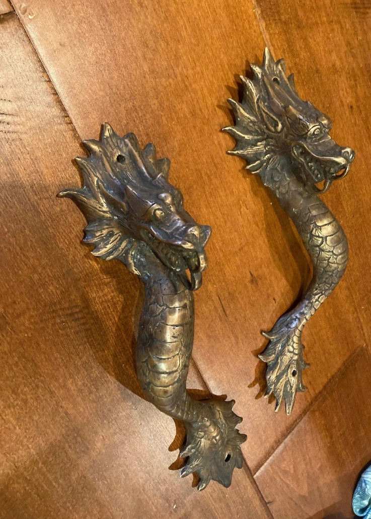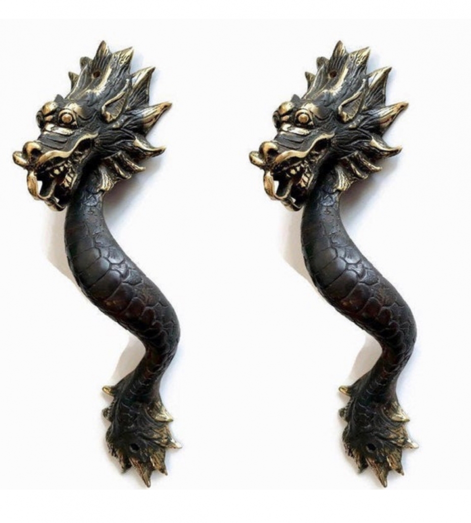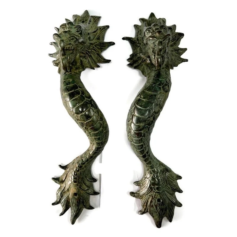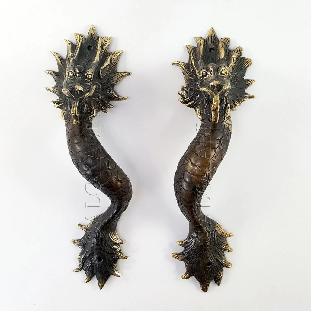 3 Dragon door pull 30 cm aged brass vintage old style house handle 12″ long Bronze patina