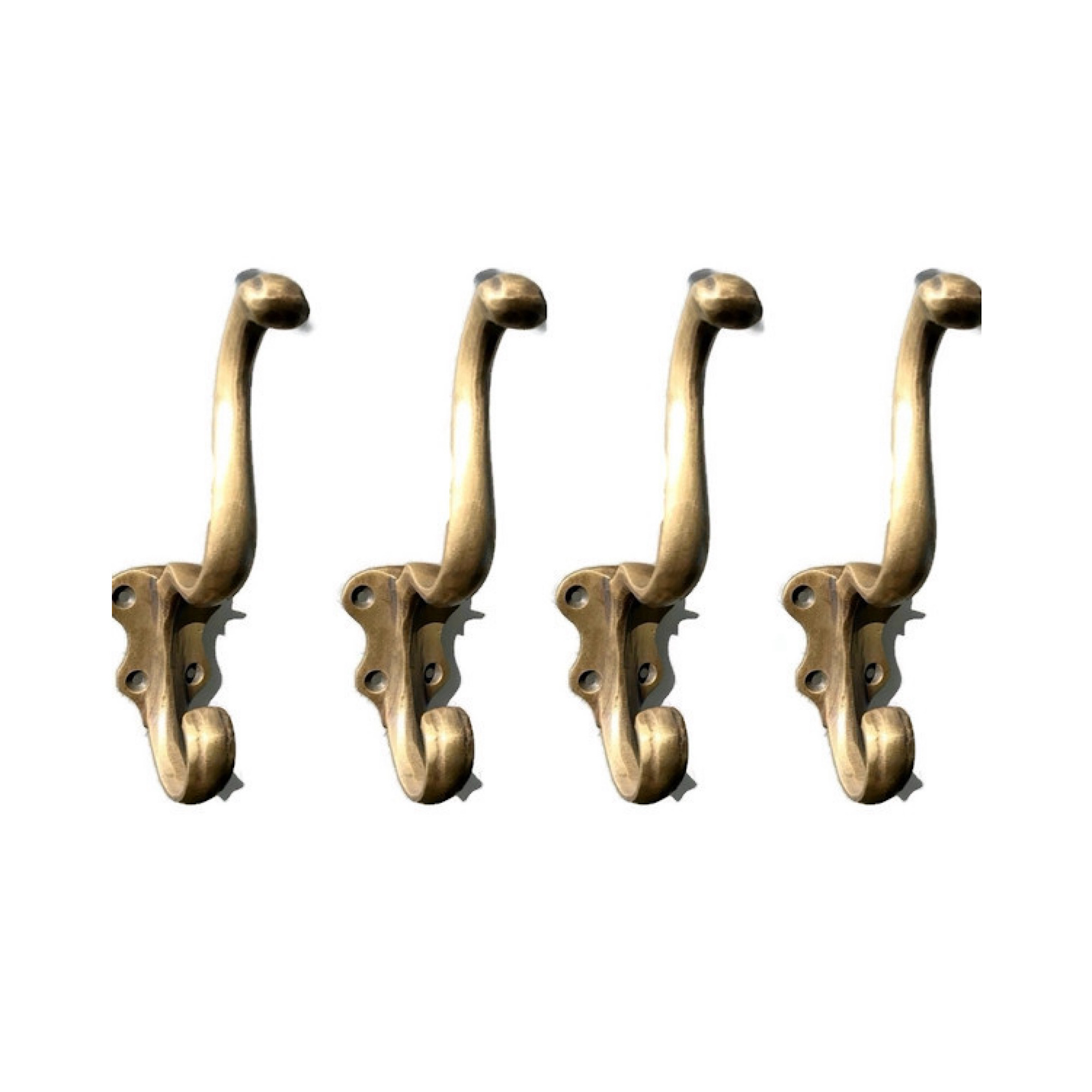 2 COLOUR ANTIQUE - heavy Solid brass coat hooks 4 inch