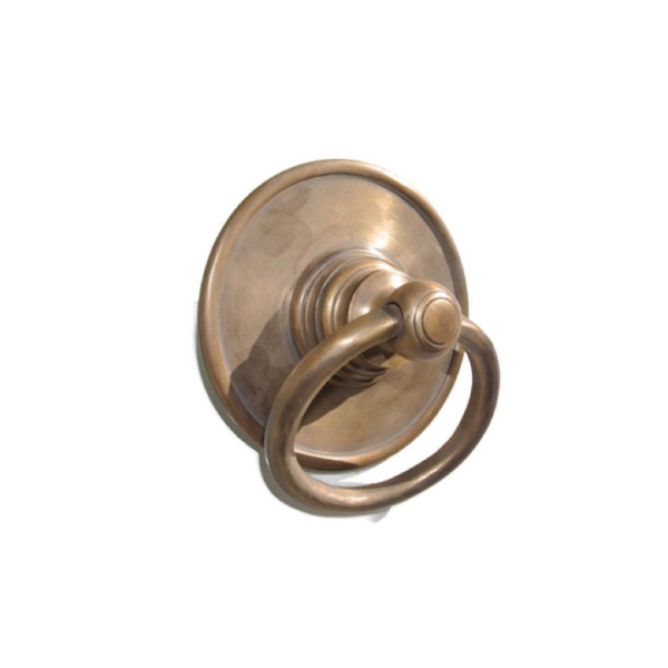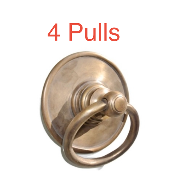 4 small version round handle ring pull 7.5 cm solid brass heavy old vintage...