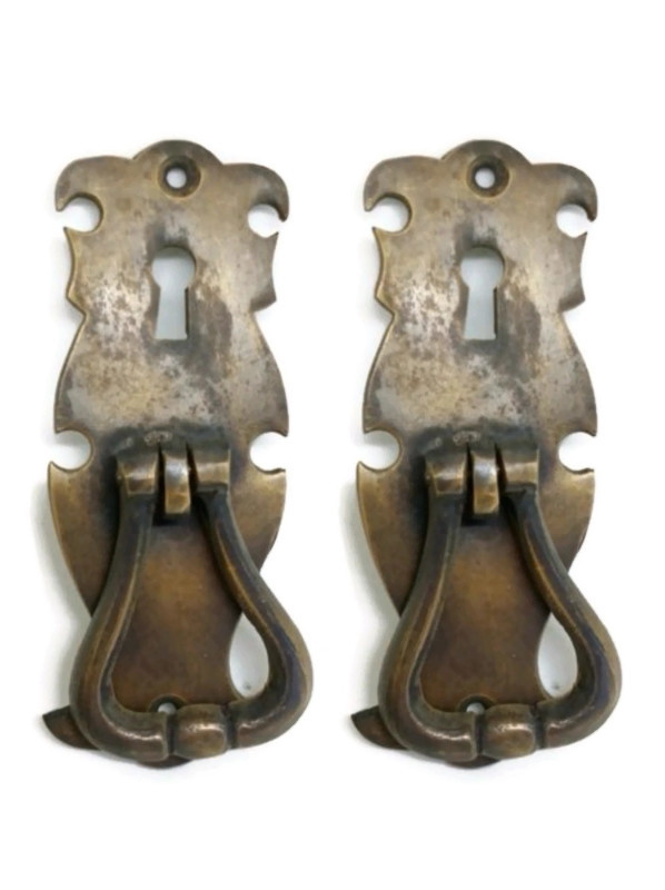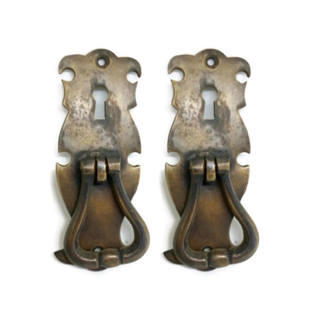 2 antique style brass colour DOOR DRAWER HANDLES pulls pedestals
