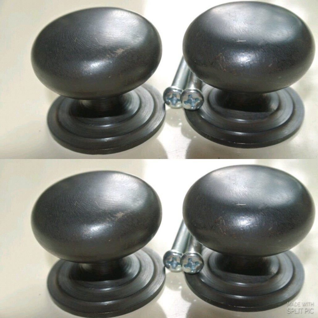 4 small 1.1/2″ inches wide dark oxidised black antique look heavy pulls handles antique style solid brass vintage drawer knobs round 36 mm