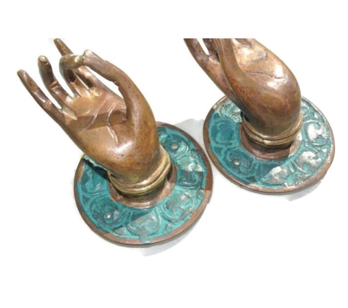 2 small Buddha Pulls handle Fingers aged antique brown patina 100% brass door...