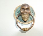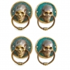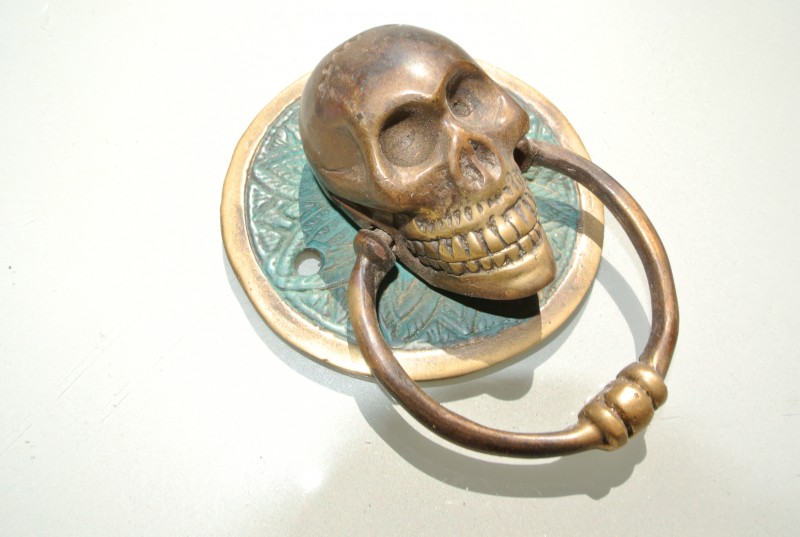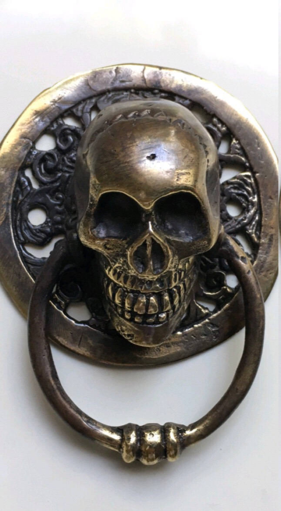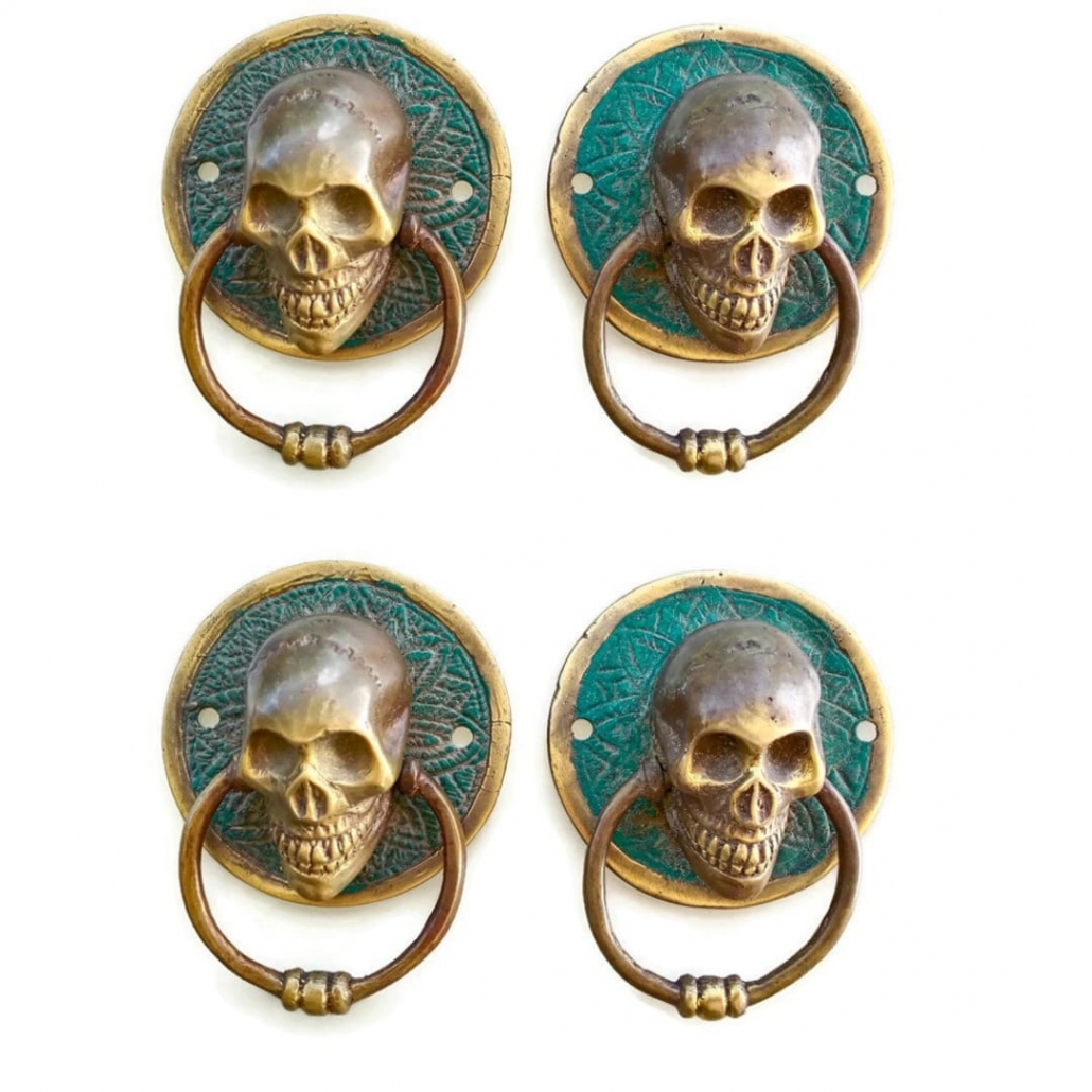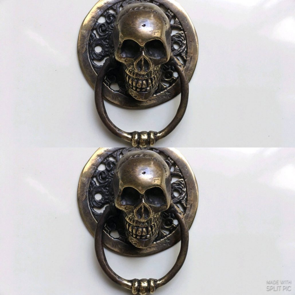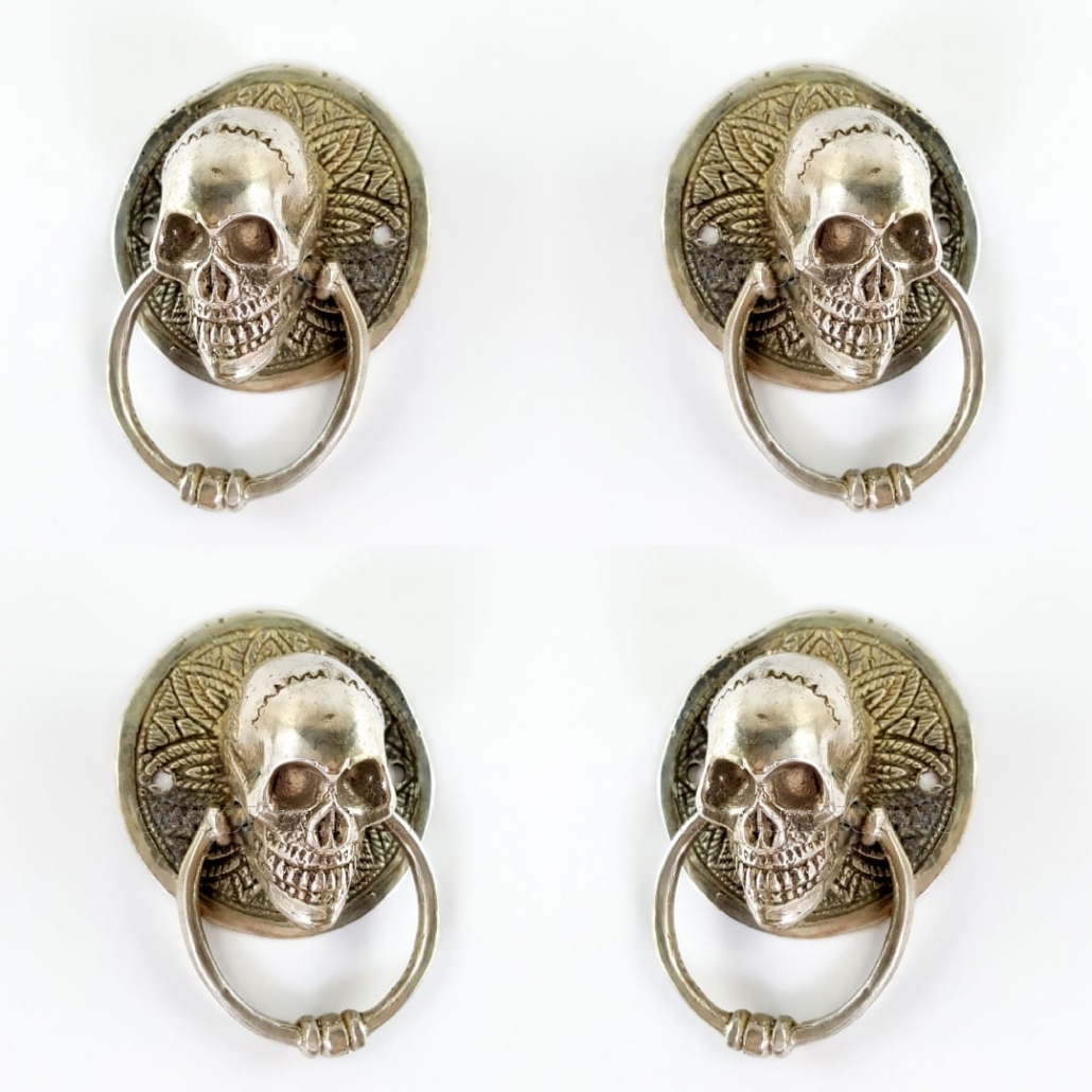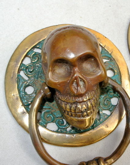 2 small round SKULL head ring pull Handle BRASS 7.5 cm day of the dead cabinet...