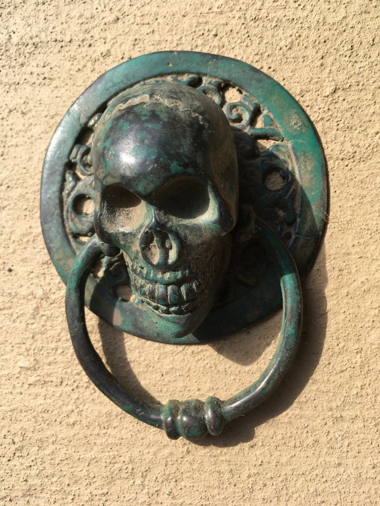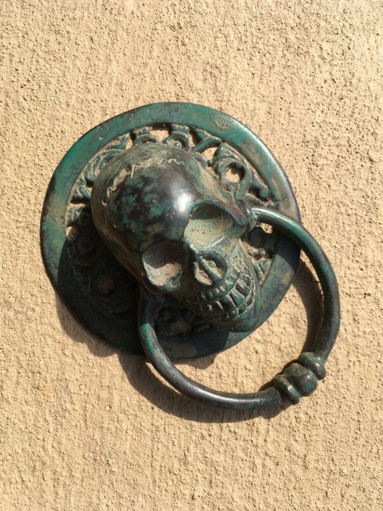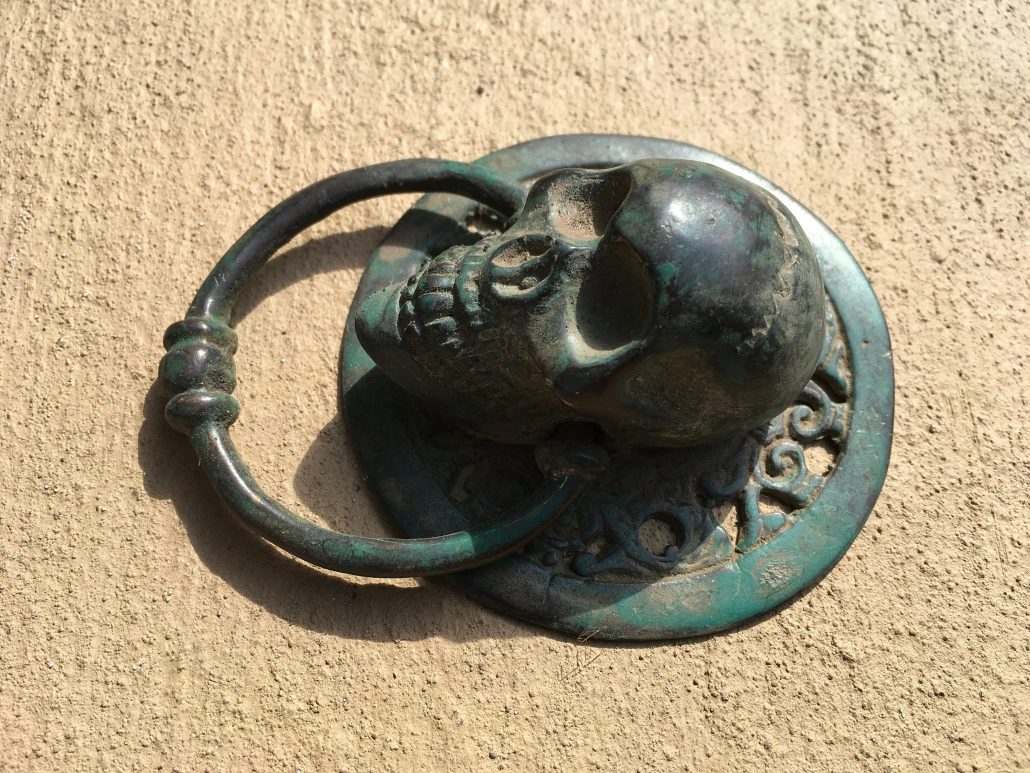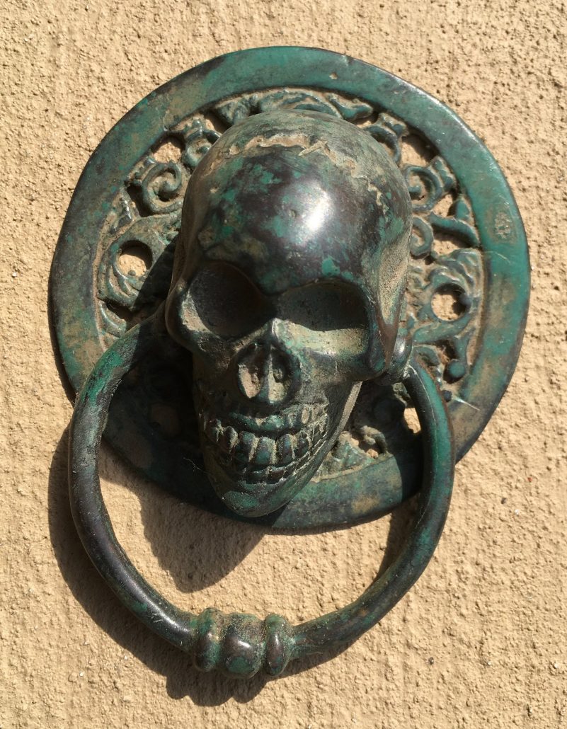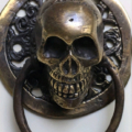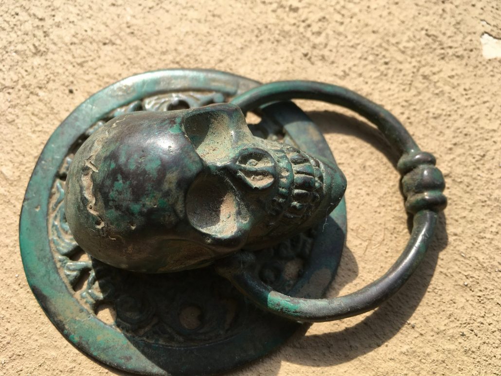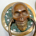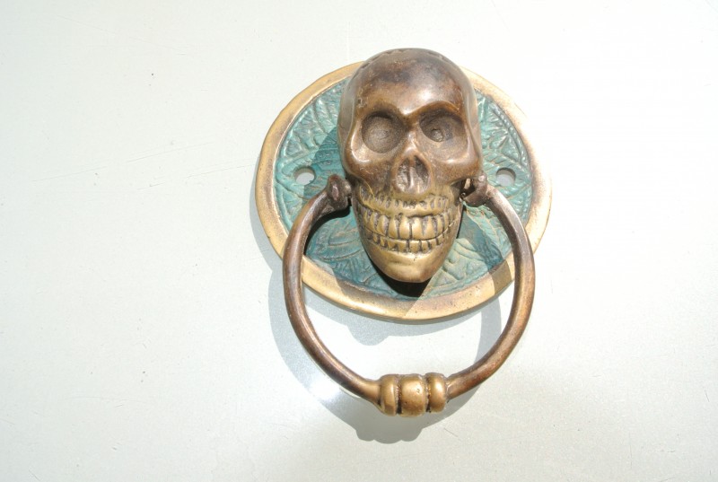 2 small round SKULL head ring pull Handle BRASS 7.5 cm day of the dead cabinet...