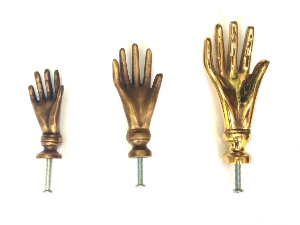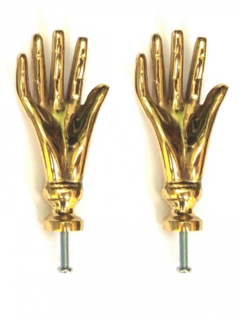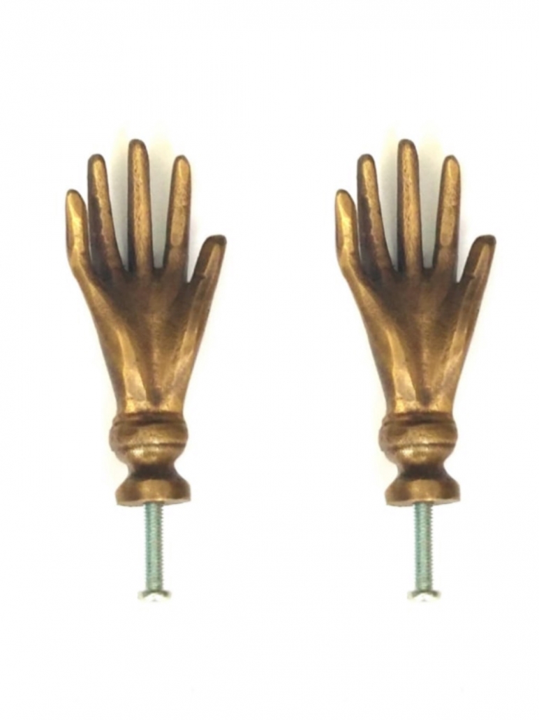 2 small SOLID 100% Brass polished 2.1/2″ LADIES Kingdom 6.5 cm FINGERS Vintage Cabinet Drawer Knob Pull heavy old style house hand made cabinet kitchen knob
