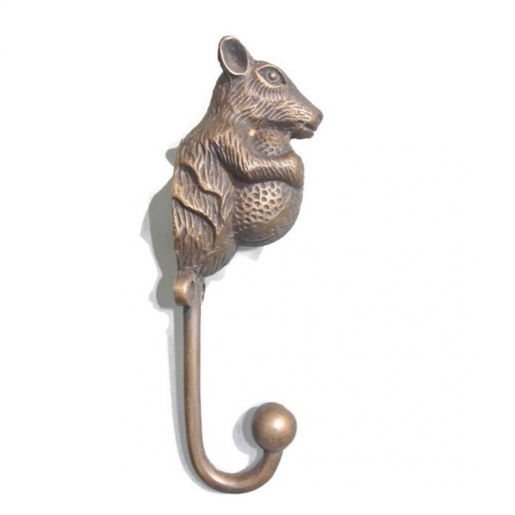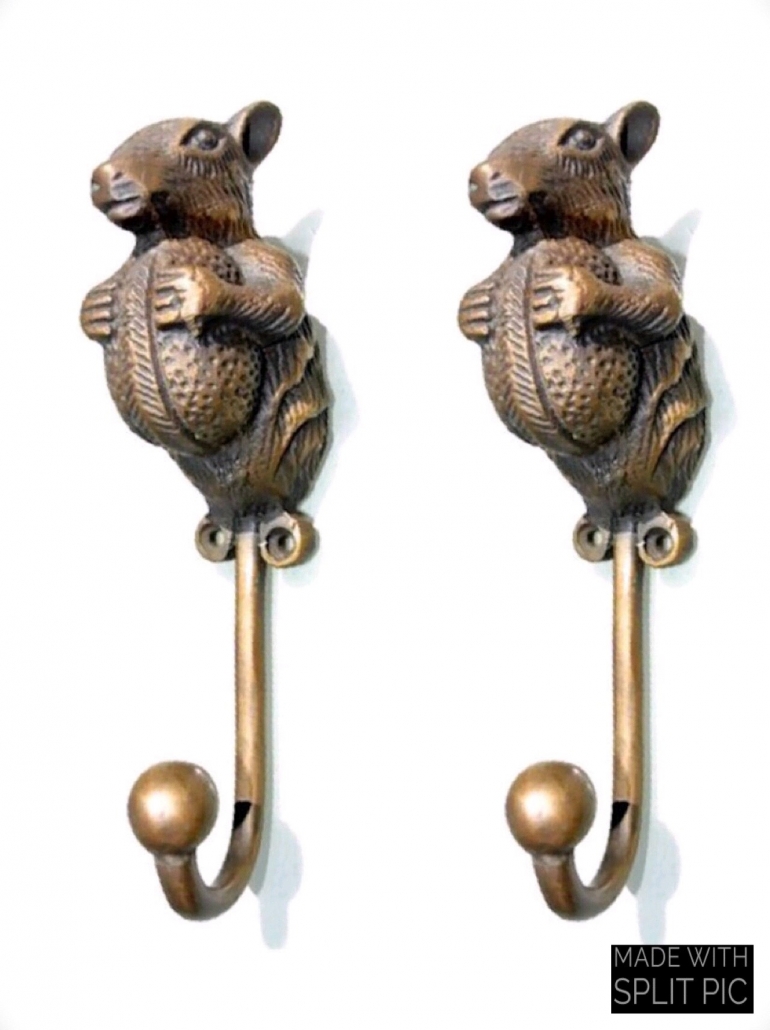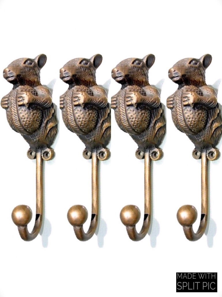 4 SQUIRREL HOOK 6.1/2 ” long aged solid real heavy BRASS old vintage style natural hand made heavy 16 cm hanger screw