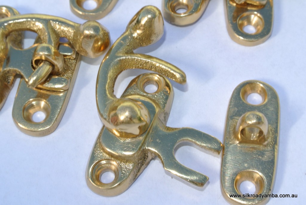 6 heavy Nice tiny FORK jewellery swing arm small box Latch 30mm catch solid pure brass polished doors trinket vintage old antique style jewellery cabinet lock hasp
