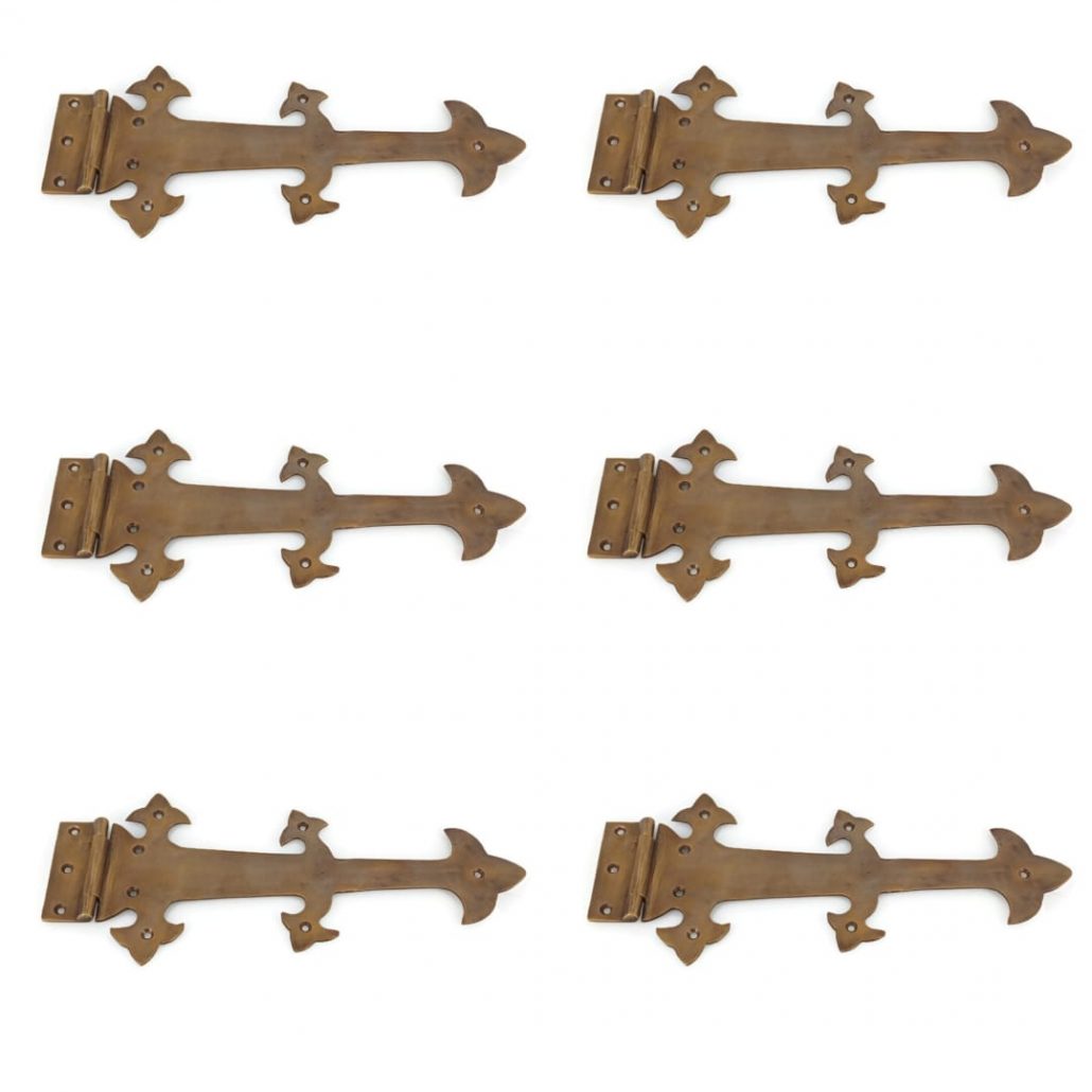 6 Large hinges vintage aged style solid 100% Brass DOORS BOX restore heavy long 11″ bronze natural aged oxidized patina