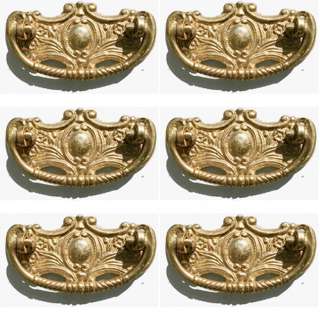 6 medium size antique style brass handles