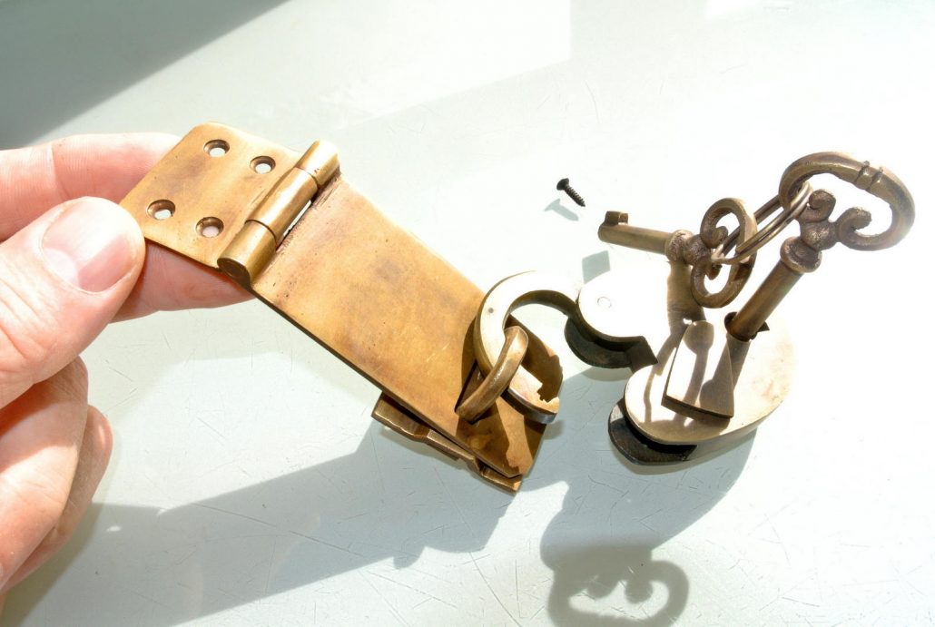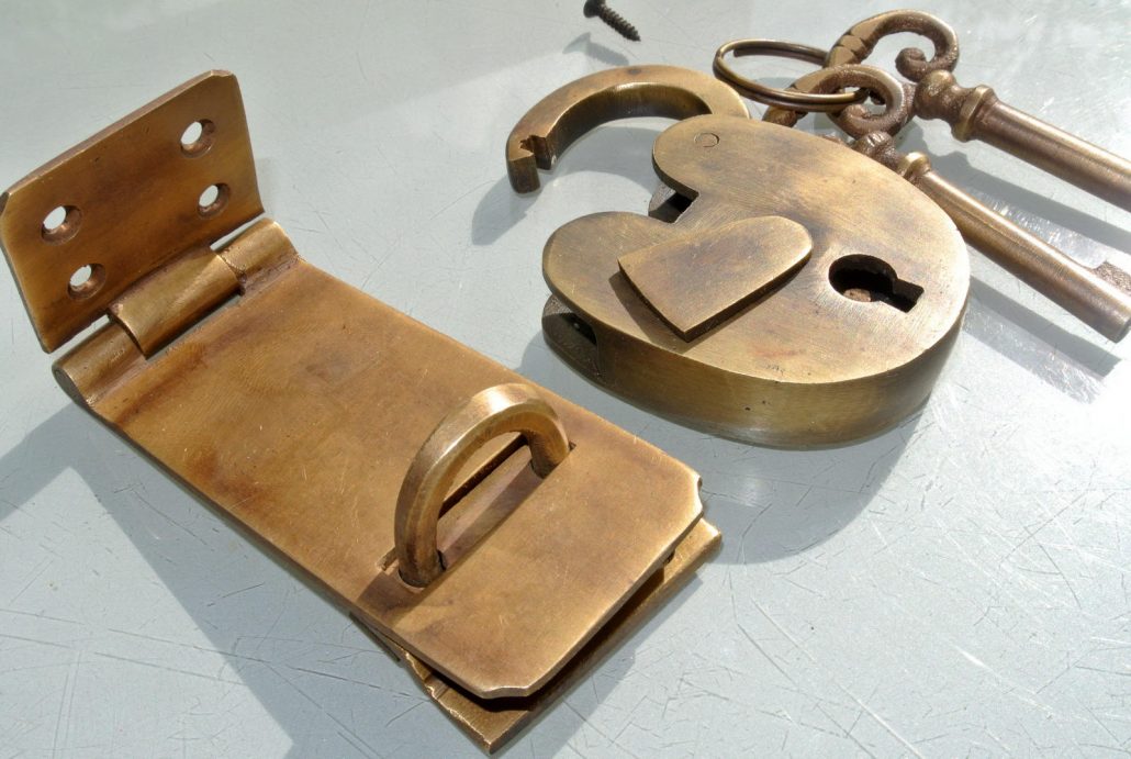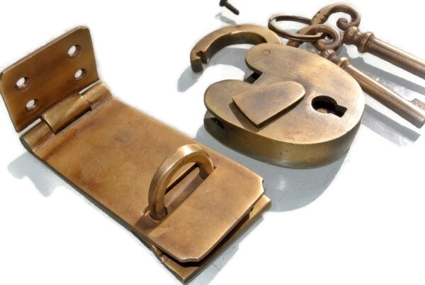 rectangle shape heavy HASP & STAPLE and includes small 2″ solid heavy Padlock for the BOX or DOOR CATCH