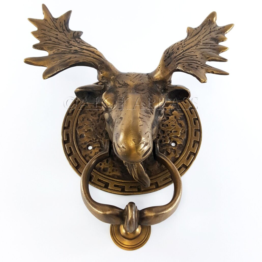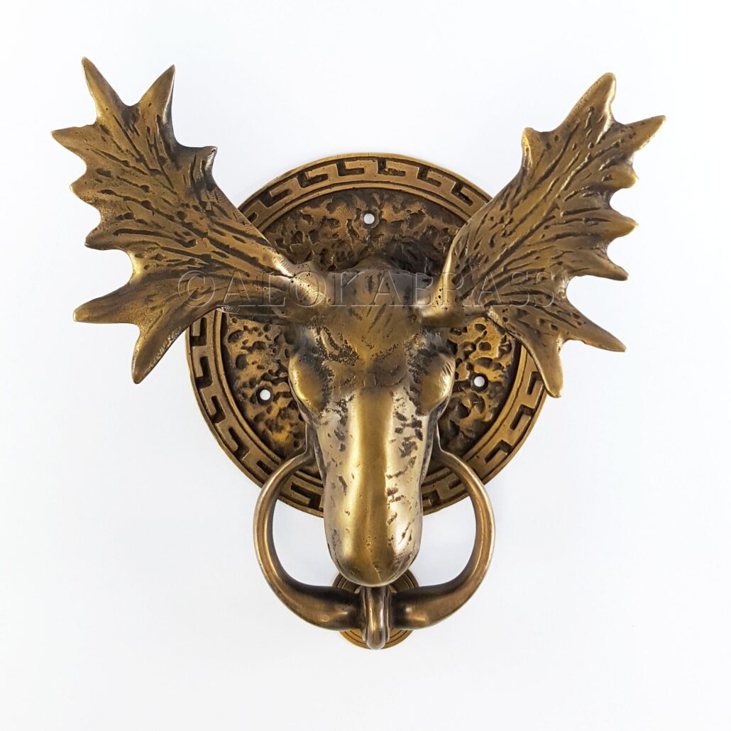 Brass Large Solid heavy MOOSE Horns Door knocker banger.