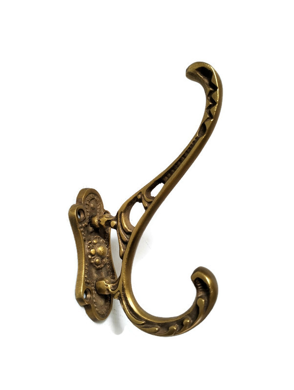 2 COLOUE ANTIQUE- COAT HOOK Victorian door solid heavy brass