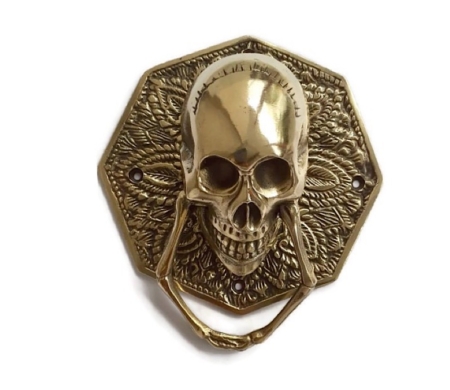 2 large SKULL antique brass POLISHED head ring pull Handle pure 100% brass...