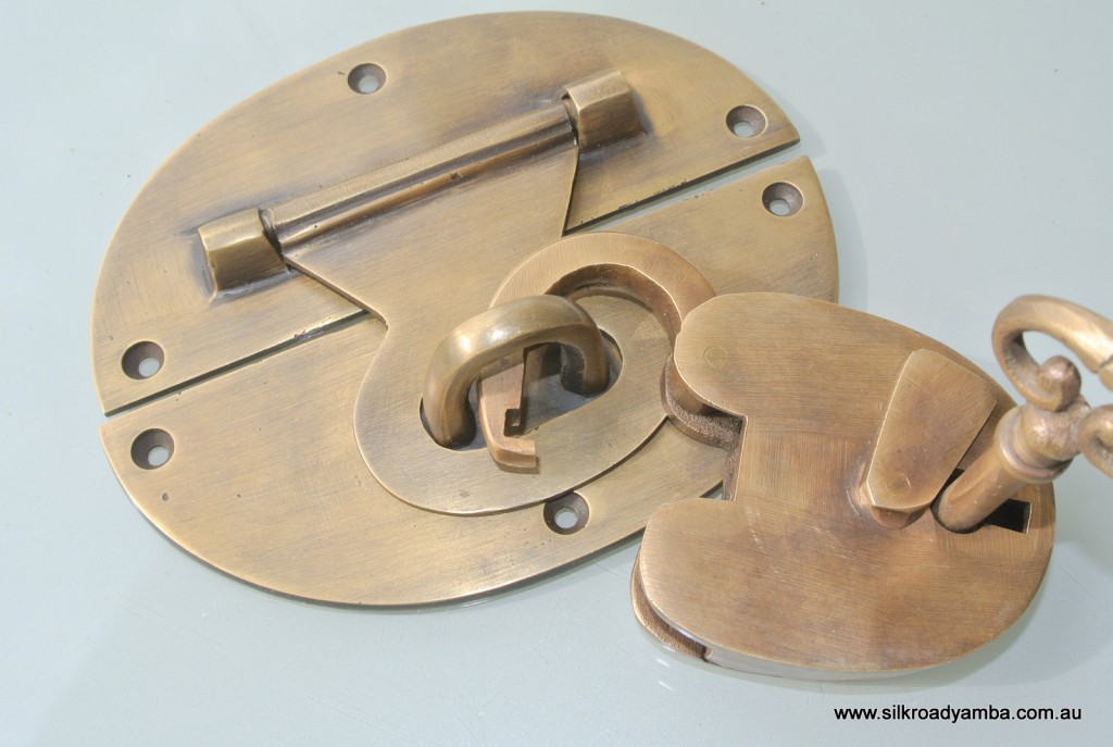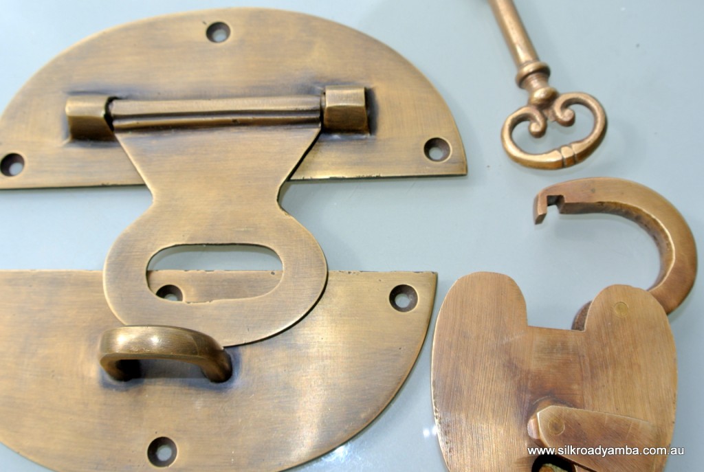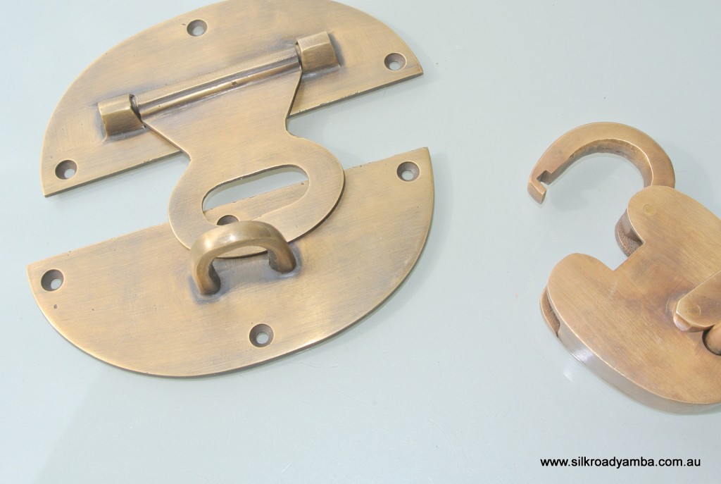STUNNING large heavy brass HASP & STAPLE including solid brass padlock