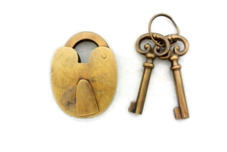 Padlock Vintage stye antique look solid heavy brass aged keys lock works