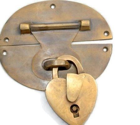 catch latch 5″inch blanket trunk box brass fittings Back plate lock 2 keys brass SMALL love heart pad lock