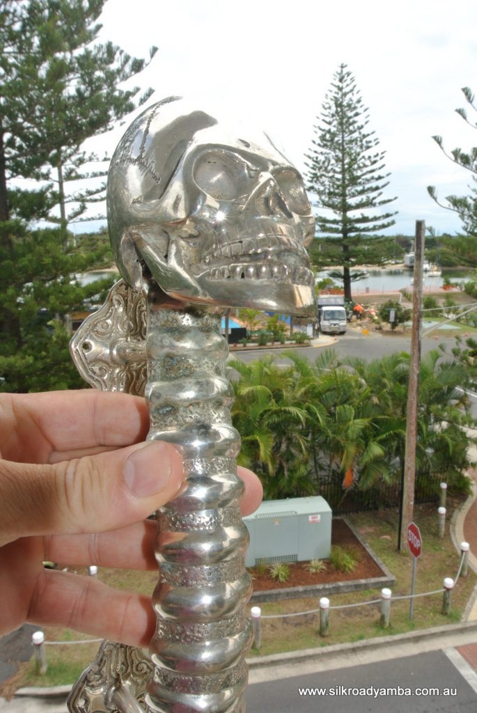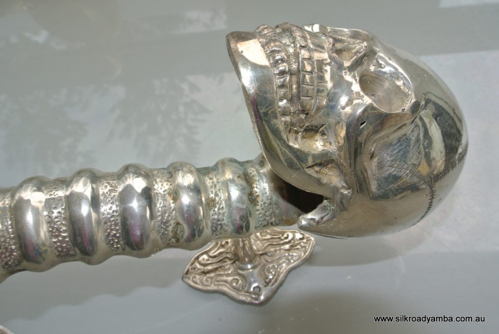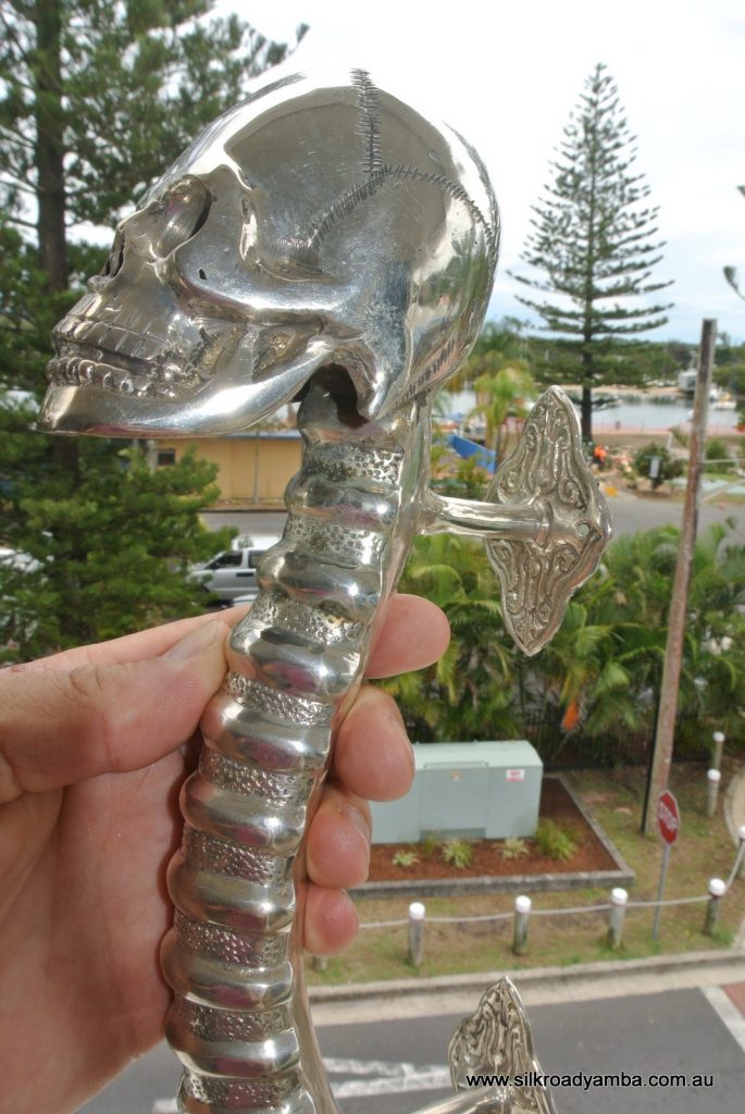 You are here: Home1 / Shop2 / DOOR PULLS3 / SKULL handle door pull spine pure brass old style silver plate 13″...